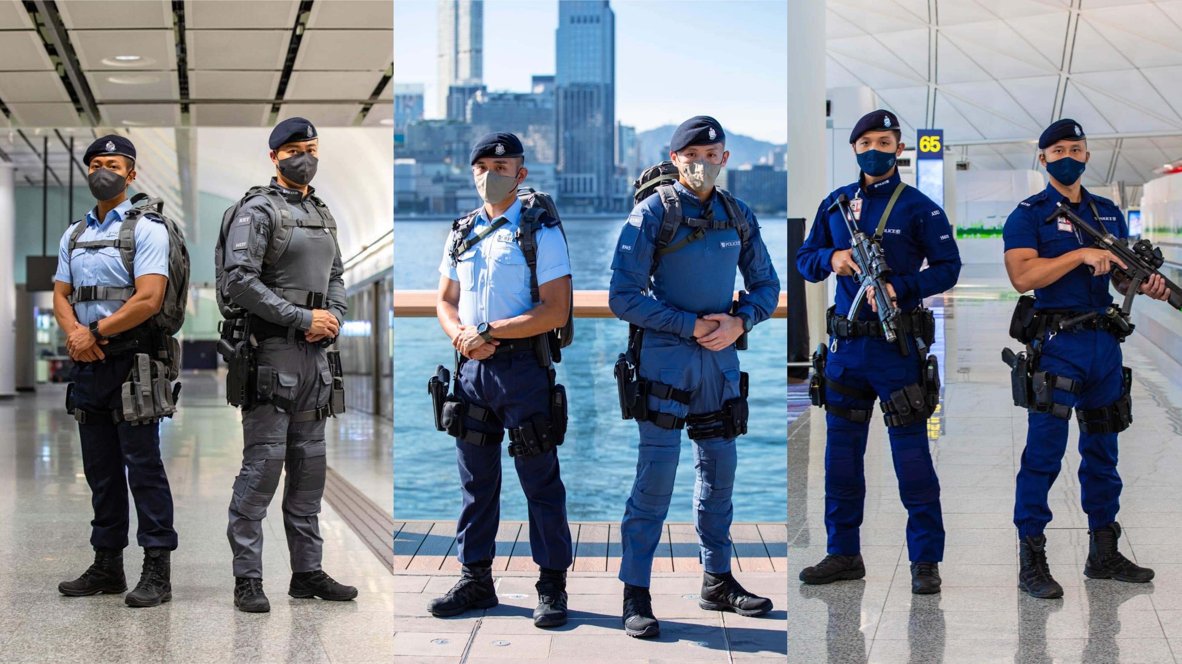 三個特警部隊的新制服顏色各有不同,藍色代表機場特警組;灰藍色代表反恐特勤隊;而淺灰色則代表鐵路應變部隊。
