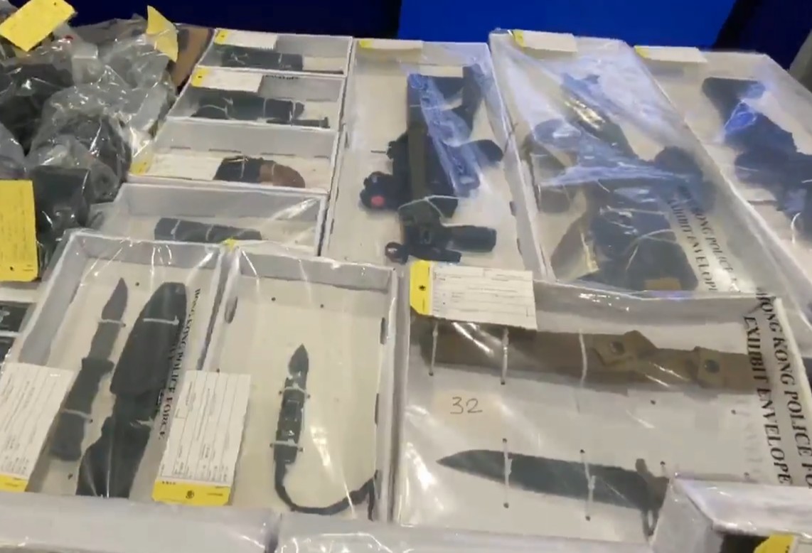 至於西九龍總區則鎖定深水埗一個住宅單位,檢獲27支氣槍,包括9支長槍及18支短槍、56個彈匣及3把軍刀,一名44歲送貨工人被捕。