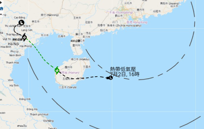 根據現時預測路徑,該熱帶低氣壓會在今日與香港保持超過400公里的距離。與該熱帶低氣壓相關的外圍雨帶,正為廣東沿岸帶來大驟雨及狂風雷暴。