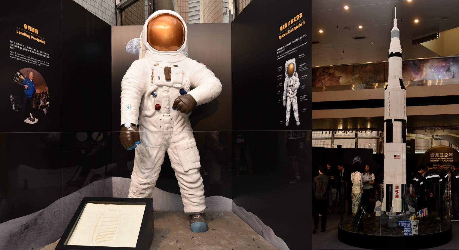 為慶祝人類登月50周年,展覽特別介紹首次把人類帶到月球的火箭、太空船和太空衣等模型、探月飛行路線和月球隕石,重溫登陸月球的歷史性壯舉。