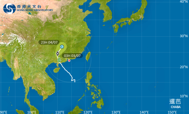 在上午3時,「暹芭」集結在香港以西約370公里,即在北緯22.5度,東經110.6度附近,預料向西北偏北移動,時速約16公里,移入廣西內陸,並逐漸減弱。