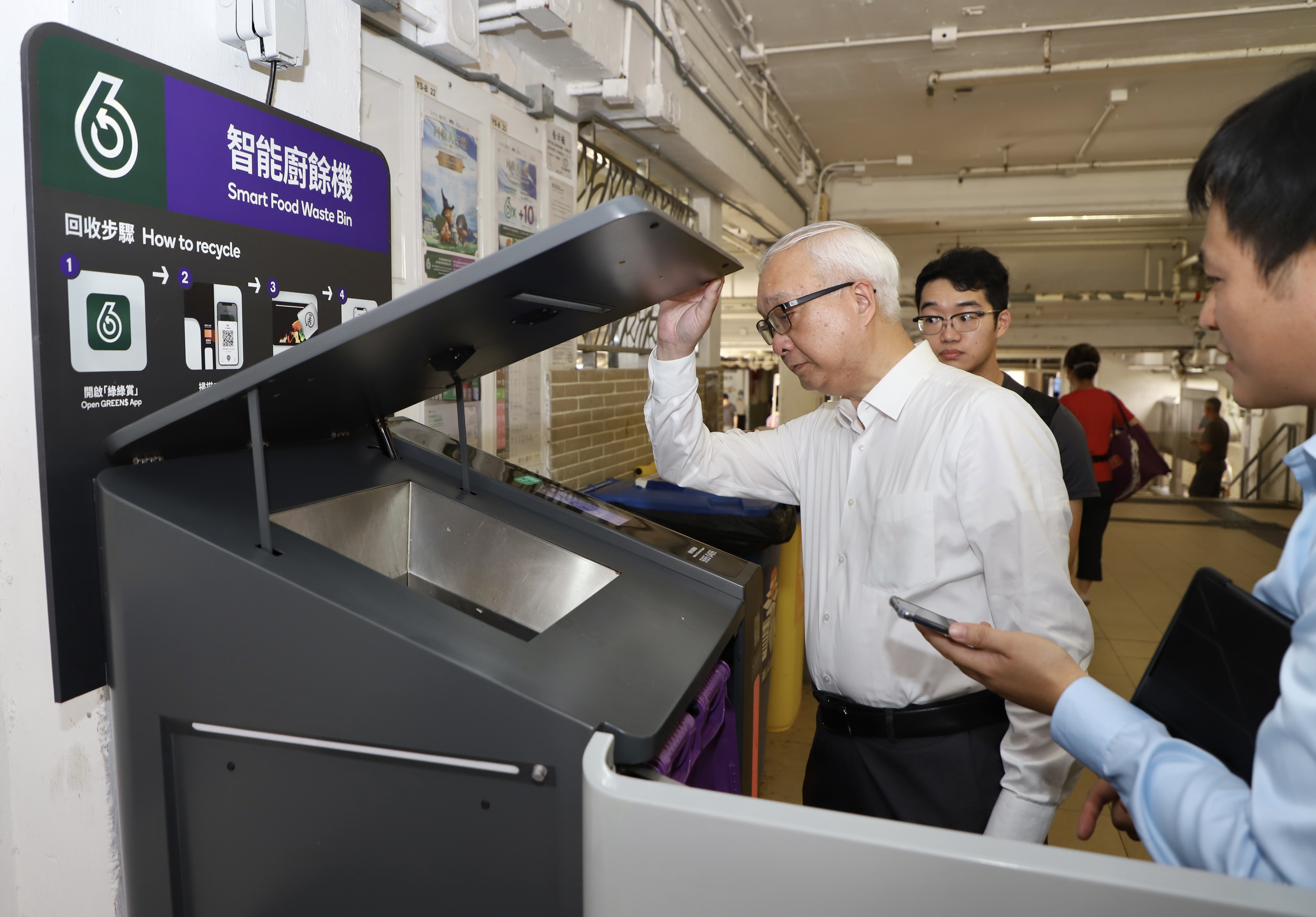 他指由公共屋邨收集的廚餘會被送往各廚餘處理設施轉化為電力和堆肥。環保署會繼續在新落成的公共屋邨安裝智能廚餘回收桶,並計劃於今年第三季起在廚餘回收量較高的公共屋邨優先增置更多智能廚餘回收桶及逐步推展至其他公共屋邨,目標是在兩年內達到起碼「一座一桶」,以方便市民。