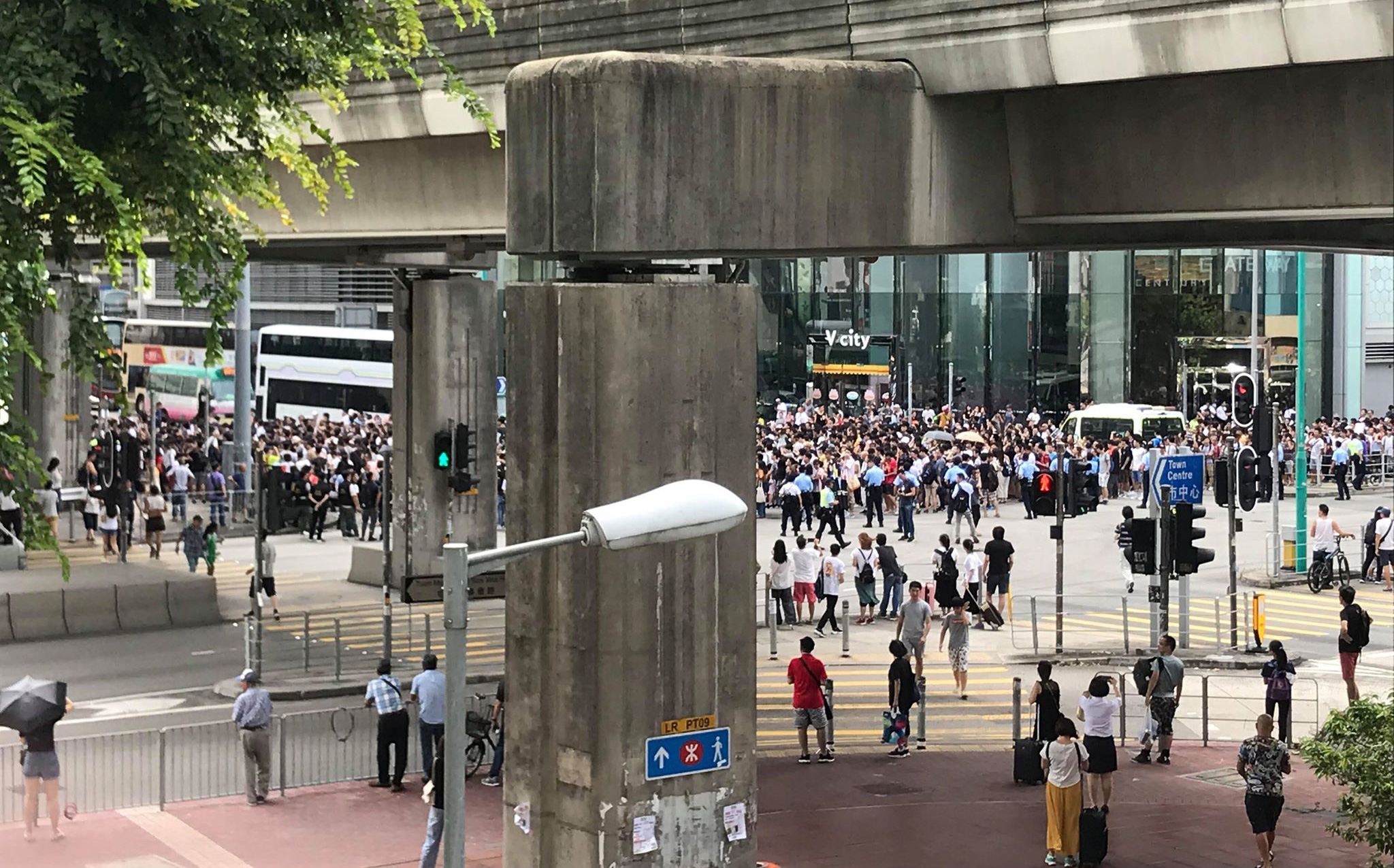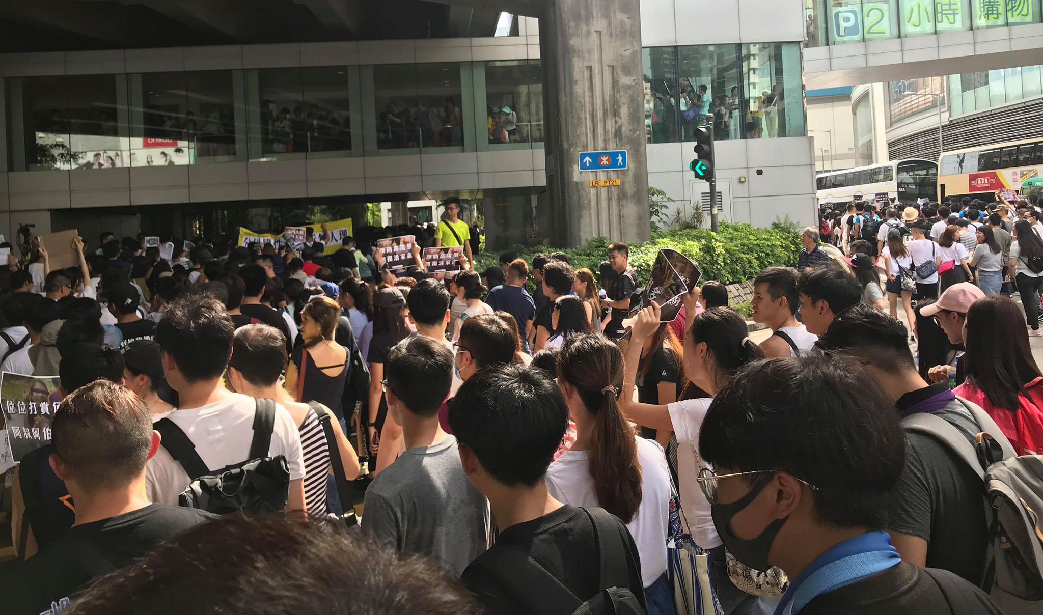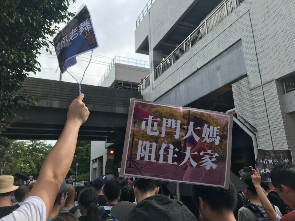 街坊沿行人路參與遊行,他們高呼「光復屯門,刻不容緩」、「屯門大媽多,嚇親細路哥」、「預防禽流感,勿摸活家禽」等口號,獲得現場街坊支持。
