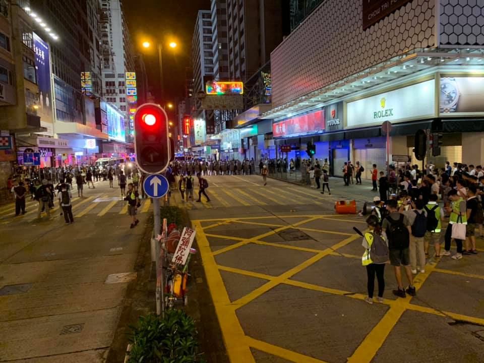 西九龍遊行結束之後,示威者入夜之後轉到彌敦道一帶,直至晚上10時許,警方於旺角亞皆老街及彌敦道的十字路口佈防,之後開始驅散示威者。