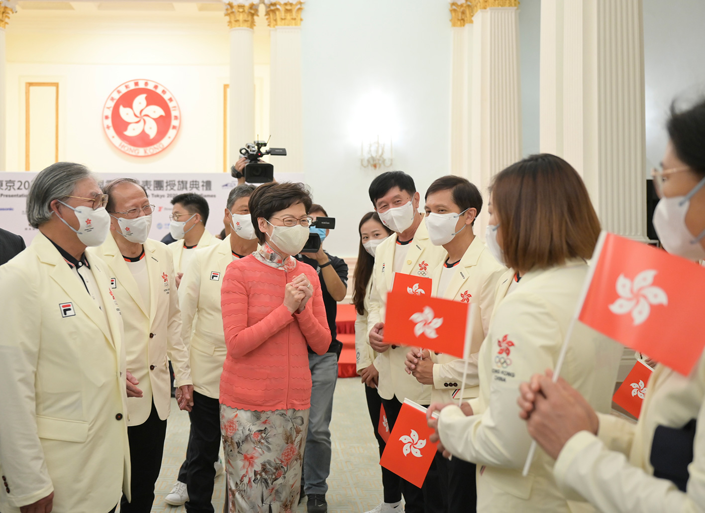 與此同時,特首林鄭月娥今日(7月8日)向香港代表團授旗,預祝港隊奧運健兒旗開得勝,為港爭光。