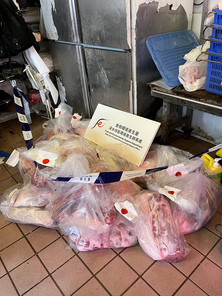 食環署今日(7月8日)於深水埗區,向兩間懷疑以冰鮮肉充當新鮮肉出售的持牌新鮮糧食店採取突擊行動。