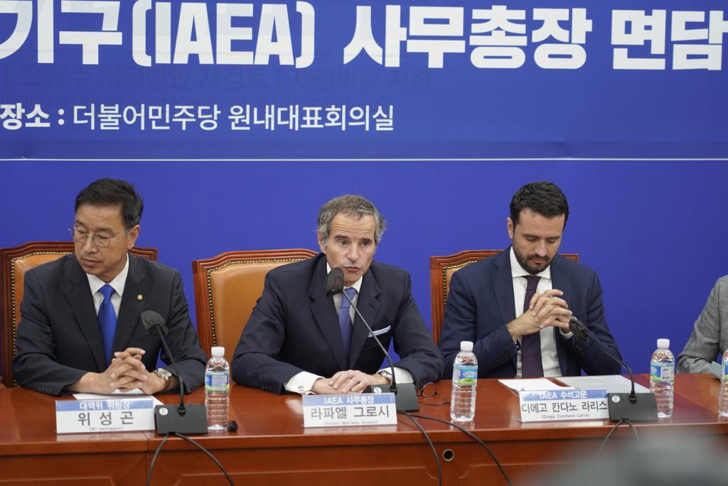 南韓最大在野黨共同民主黨議員禹元植,周日(7月9日)在國會會見國際原子能機構(IAEA)總幹事葛羅斯。為反對日本排放核廢水而絕食的禹元植表示,IAEA始終堅持了支持日本核廢水排海的立場,不調查該計劃對周邊國家的影響,令人感到非常遺憾。
