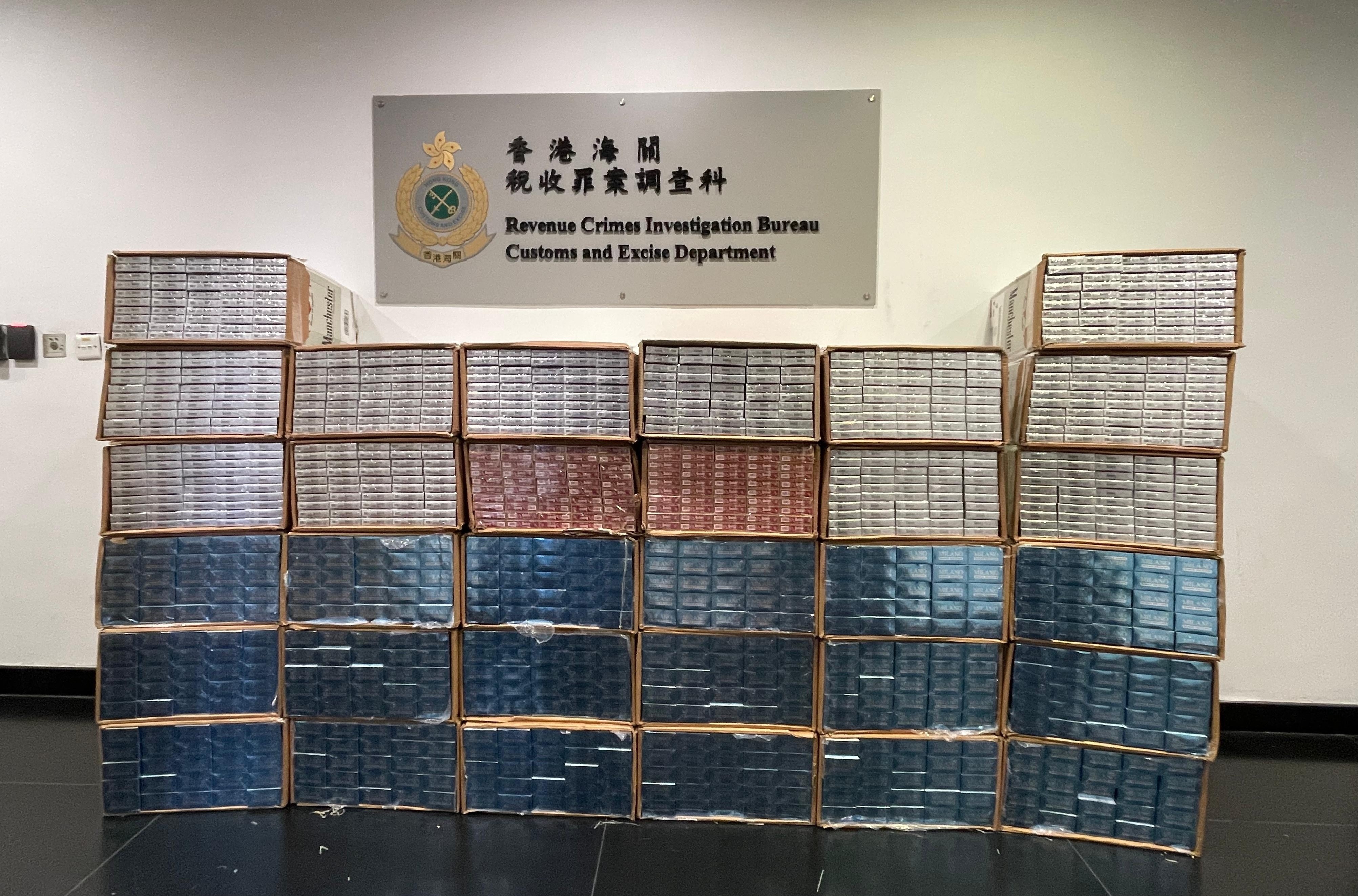 海關人員根據風險評估和情報分析,昨日在荃灣進行反私煙行動,在一幢工廈內截查一名可疑男子,於其手推車及該工廈被用作貯存倉庫的兩個單位內檢獲該批懷疑未完稅「白牌煙」,遂拘捕該名負責管理貯存倉庫、報稱售貨員的27歲男子。