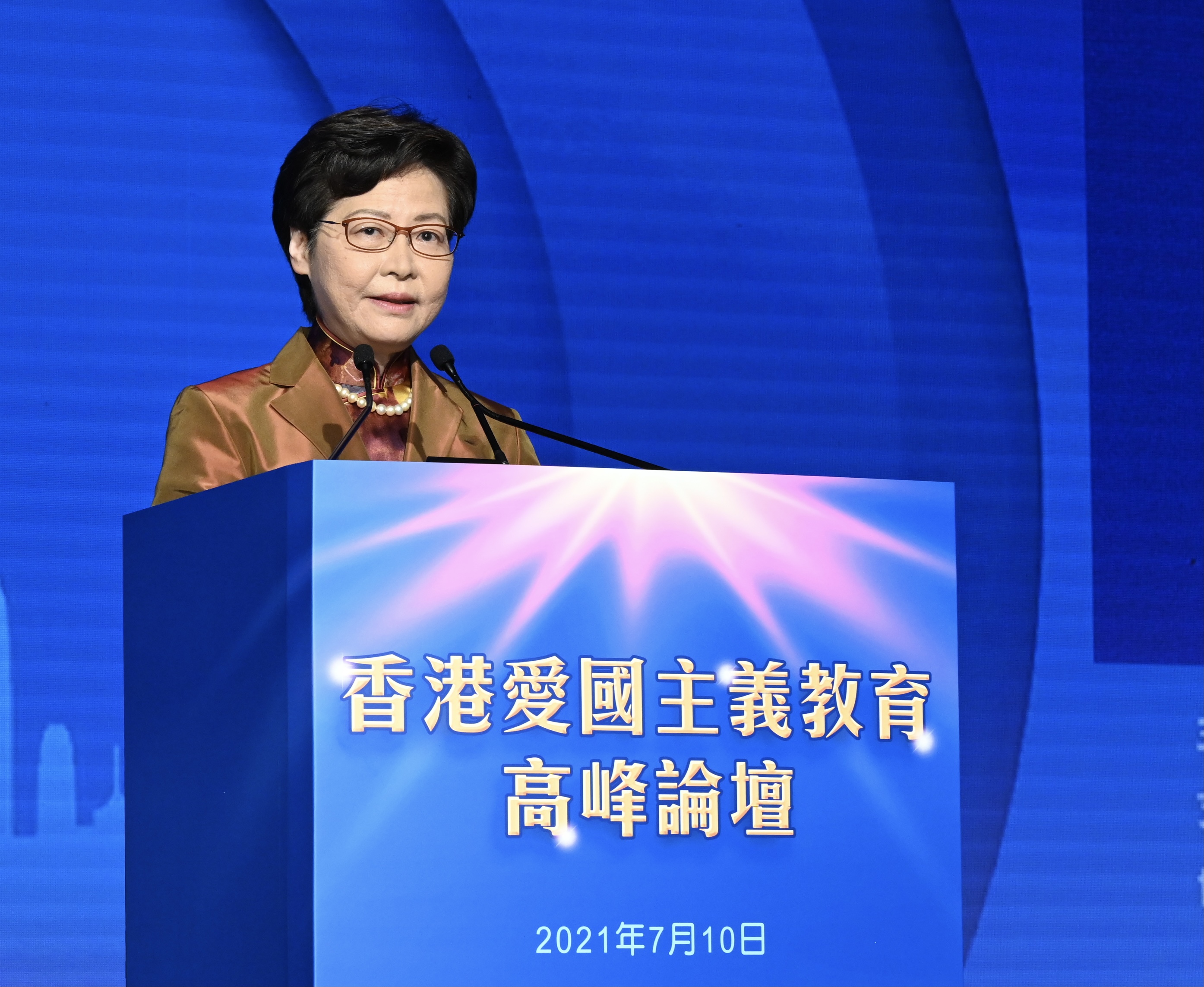 行政長官林鄭月娥今日(7月10日)出席香港愛國主義教育高峰論壇致辭,指古今中外,愛自己的國家是天經地義的事,而背叛國家都被視為非常嚴重的罪行,是天理不容的。