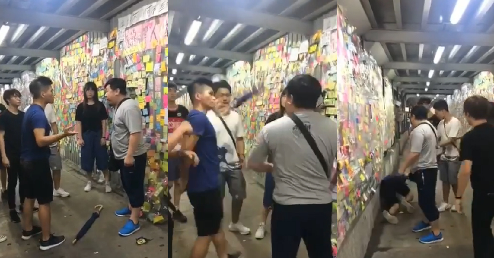 根據現場市民拍得的片段,可見一名灰衣男子多次揮拳攻擊守護「連儂牆」的男子,令男子受傷倒地,然後灰衣男子繼續破壞「連儂牆」,旁人喝止聲稱會報警時,灰衣男子挑釁道「你咪告我囉,我飲醉酒!」「醉酒唔係大晒?乜都得呀!話俾你聽,傻嘅話殺你質你兩刀都仲得呀!」