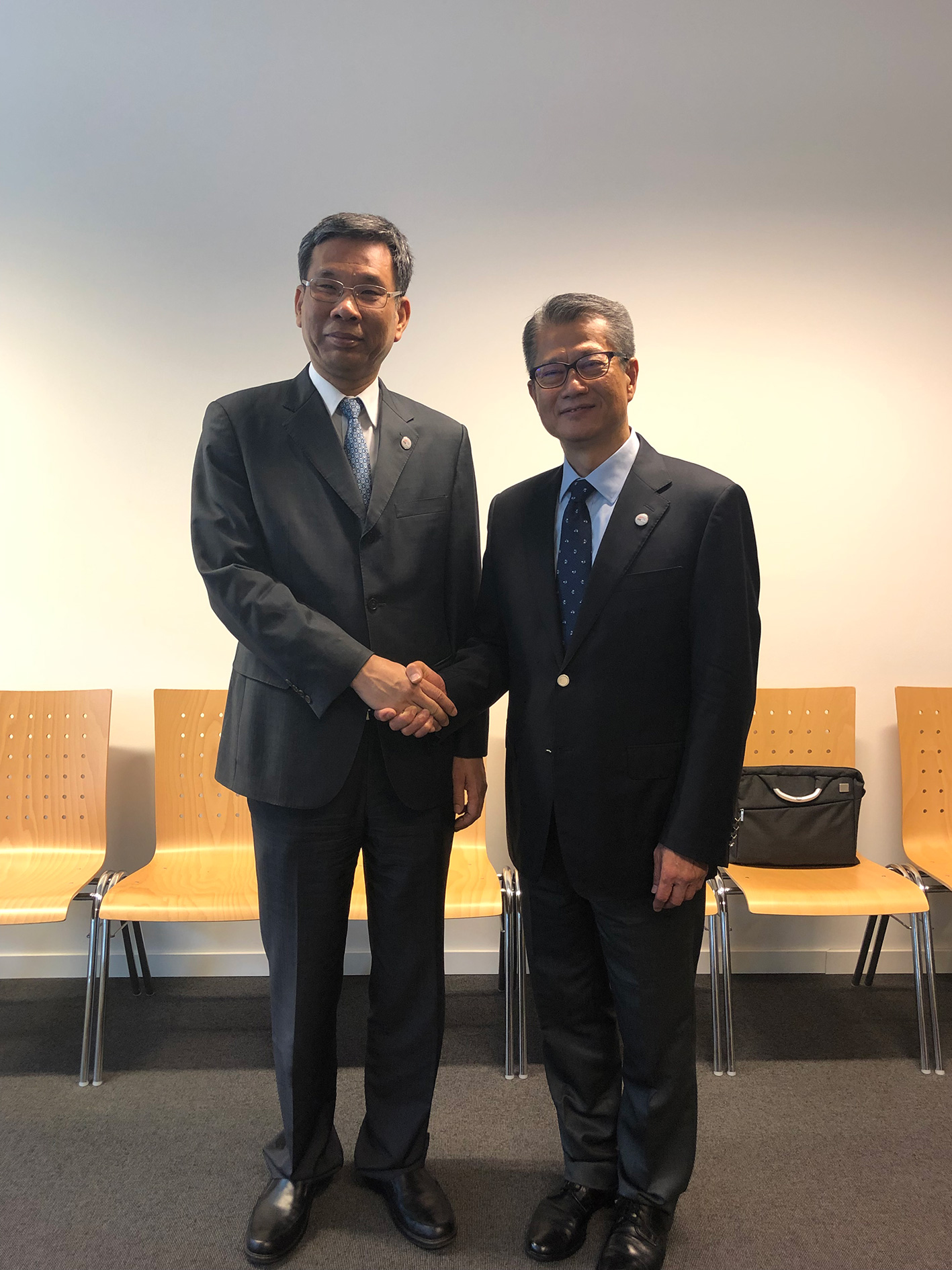 陳茂波又說,特區政府歡迎財政部在香港發行人民幣國債,有助鞏固香港作為全球離岸人民幣業務樞紐的地位。此外,雙方就加強本港與中國在金融方面的合作、粵港澳大灣區發展規劃,及香港參與亞投行的工作等交換意見。
