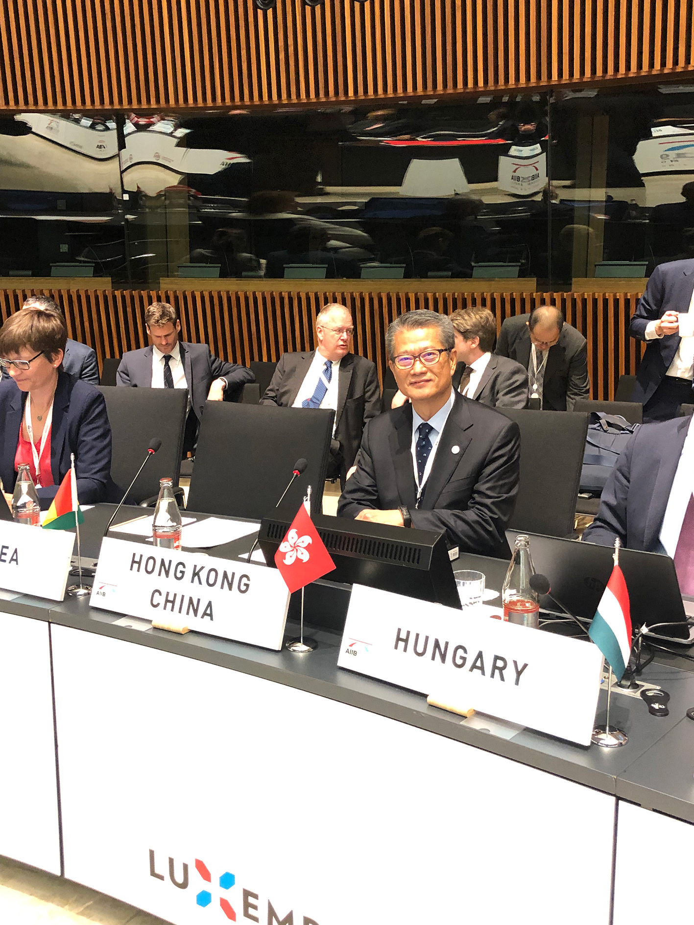 財政司司長陳茂波昨日(7月13日)繼續在盧森堡出席亞洲基礎設施投資銀行(亞投行)理事會年會。