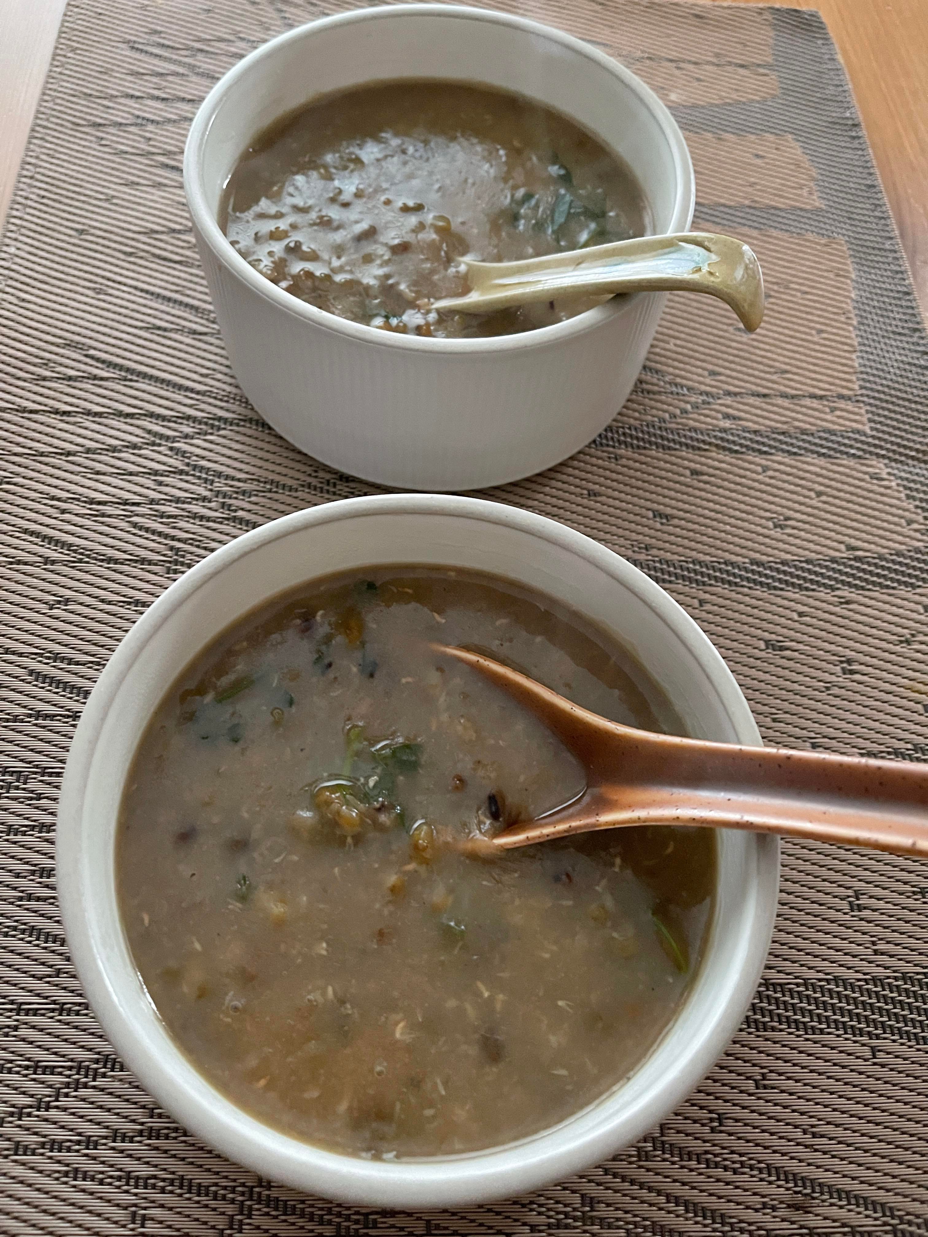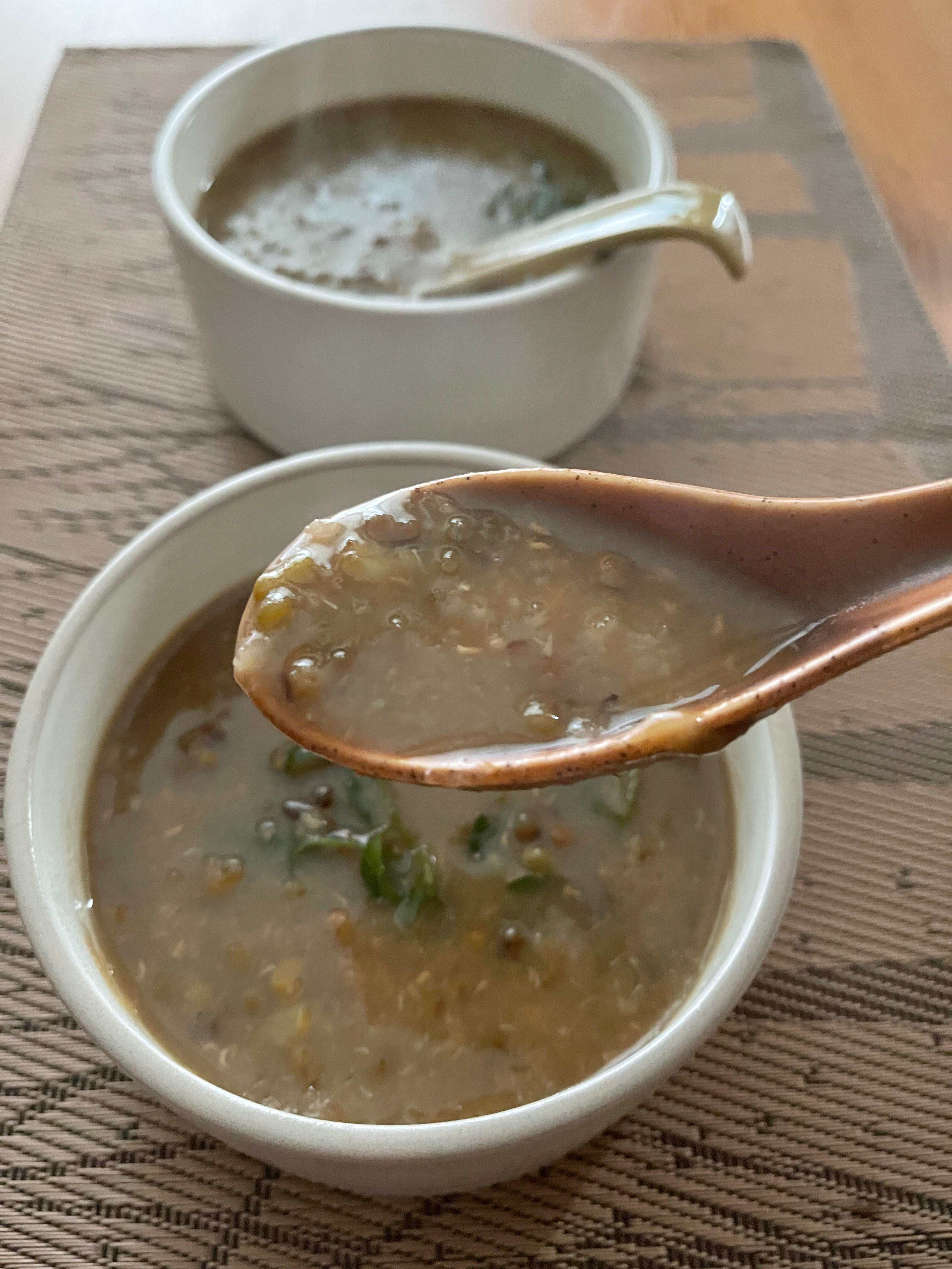 ★如沒有電子壓力煲,可以用瓦煲/煲煮滾水再加入綠豆和米,煮1個半小時至起沙為止,加入糖,最後15分鐘落臭草,煮好即可食用