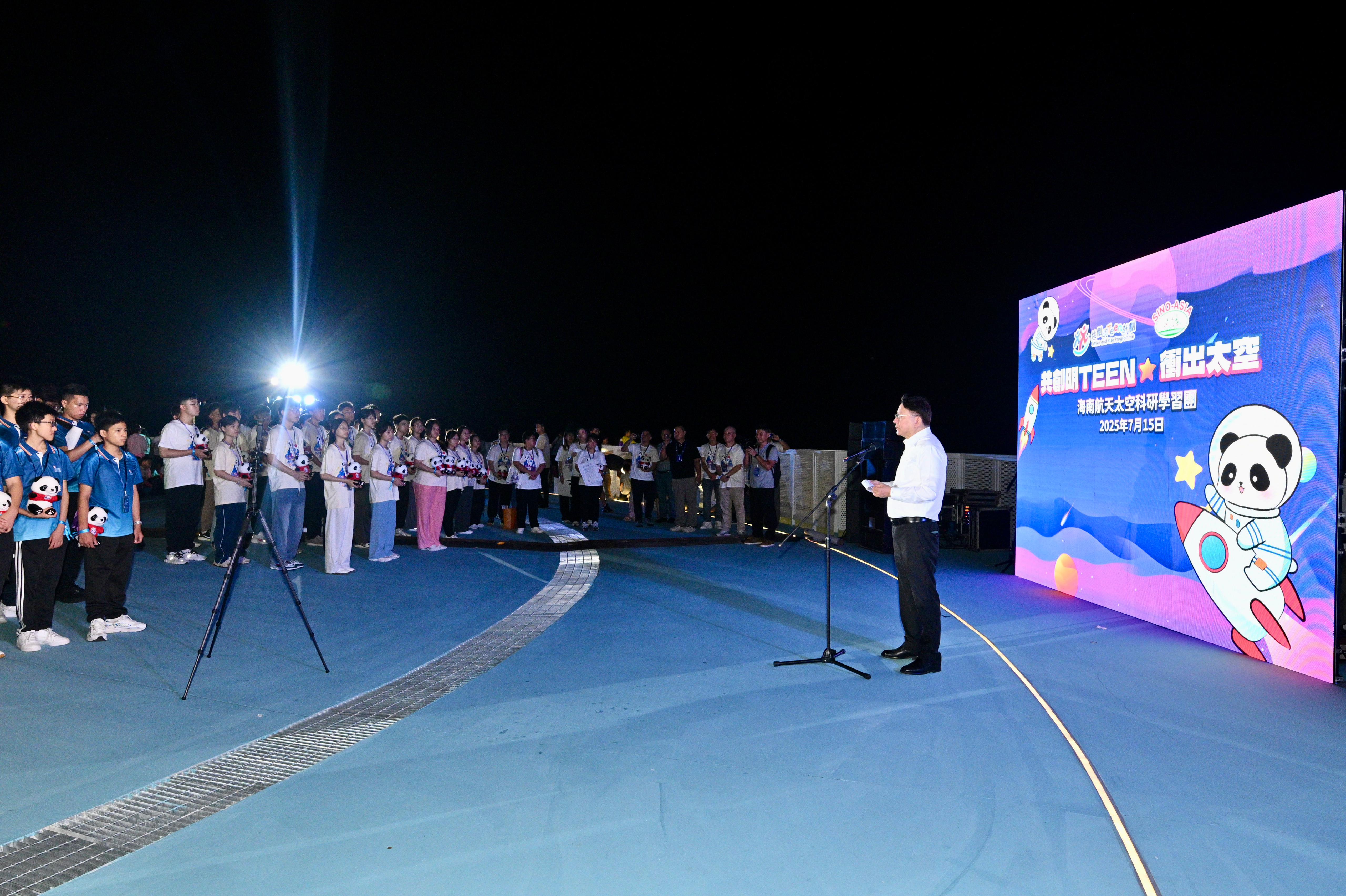 陳國基今日(7月15日)清晨到文昌瑤光火箭發射觀禮平台,參與「共創明『Teen』計劃」──海南航天太空科研學習團的科普探索活動,並與學習團的學員交流。他鼓勵學員積極投入把握這次難得的學習機會,多認識和了解國家航天事業的蓬勃發展和偉大成就,並在往後的日子繼續努力,培養貢獻國家、服務社會的心,成為對社會有承擔、有貢獻的新一代。他指出,深信學員參與這次別具意義的航天太空科研學習團的經驗,對增強他們的愛國主義情懷和民族自豪感,必定大有裨益。