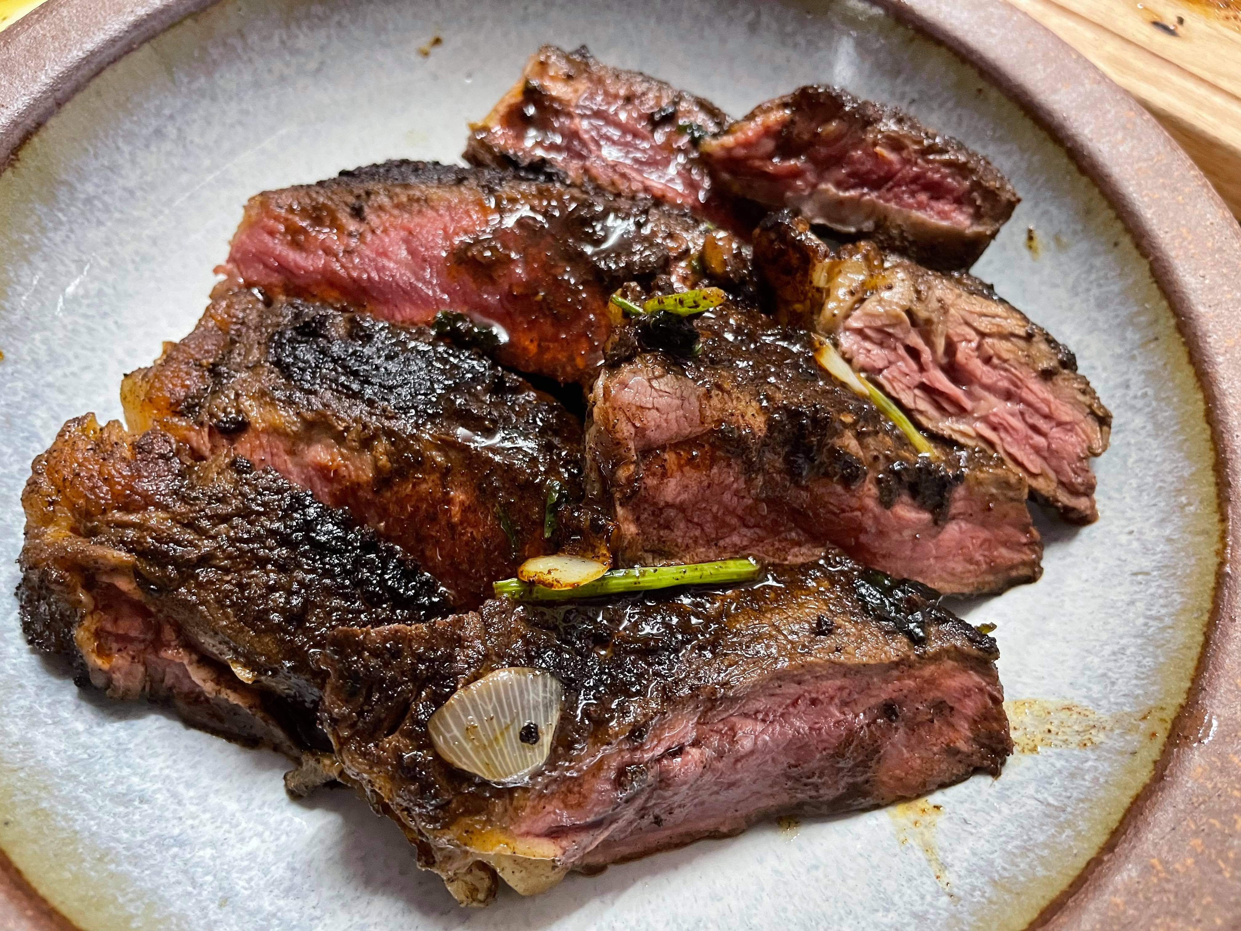 5. 肉眼反轉後,芫荽及蔥切碎並將一半放進鑊中,加入牛油,煎至自己喜歡熟度rest。