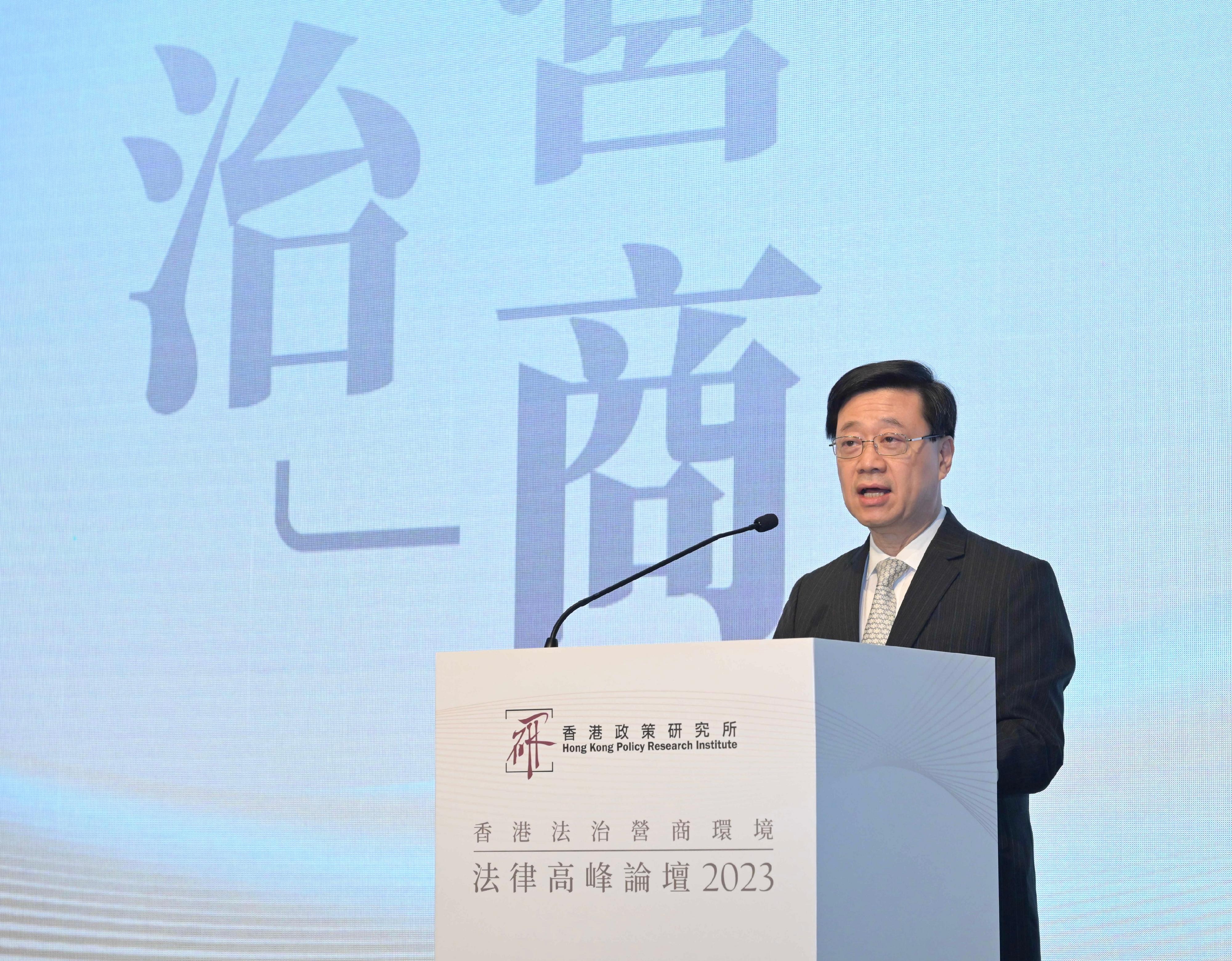 行政長官李家超今日(7月18日)出席香港法治營商環境──法律高峰論壇2023,並作致辭,指香港必須自發維護國家安全和法治精神,才能為特區、為國家提供穩定而安全的營商投資環境,盡責維護司法公正和法治精神,不受外部勢力干預。