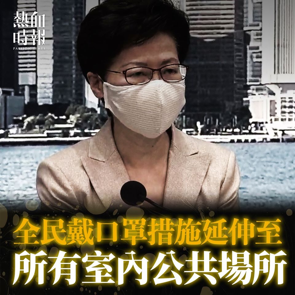 林鄭宣布召開特別行政會議,著手立法將強制市民在公共交通工具戴口罩的措施,延伸至所有室內公共場所,律政司司長正研究。