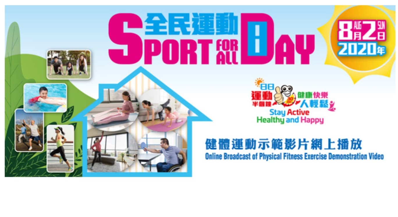 市民可在8月2日開始透過康文署「全民運動日」網頁或網上資源中心觀看一系列由中國香港體適能總會設計的簡單易學健體運動示範,在家中進行適量的運動。