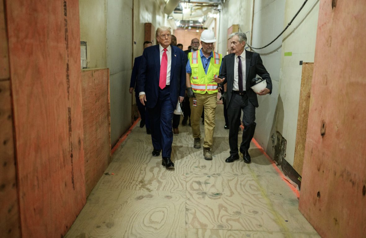 美國總統特朗普周四(7月24日)造訪聯邦儲備局,視察翻新工程。他和聯儲局主席鮑威爾在傳媒鏡頭前,因維修費用起爭拗,場面一度尷尬。
