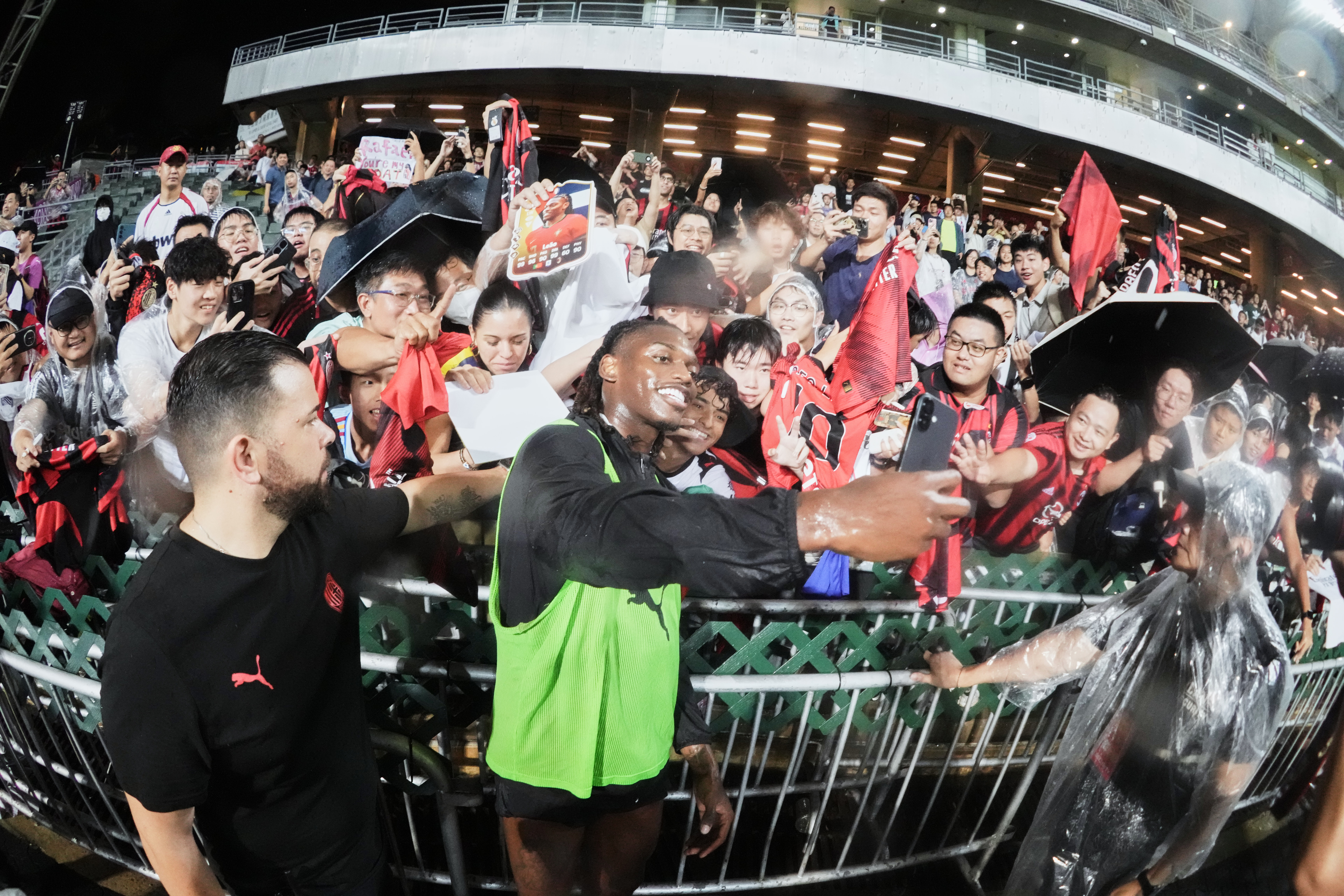 AC米蘭對上一次來港已是2004年,他們今晚甫出場,天文台便已發出雷暴警告,稍後更一度發出紅色暴雨警告,但滂沱大雨也未有淋熄球迷的熱情,他們在雨中高歌,而紅黑軍團也未有令入場觀眾失望,最後球迷仍可近距離觀看了拉菲爾利亞奧、羅夫斯卓克和邁治蘭等AC米蘭球星的表演。