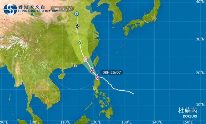 按照現時預測,「杜蘇芮」會在明日至星期五(7月27日至28日)橫過南海東北部,並會以強颱風至超強颱風的強度逐漸移向廣東東部至福建南部沿岸地區。天文台會視乎「杜蘇芮」與珠江口的距離,評估最新的熱帶氣旋警告信號。