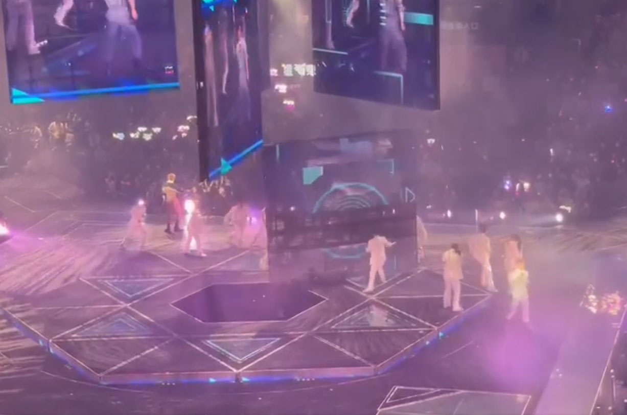 在早前的場次亦曾發生意外,成員Frankie在舞台上失足跳下擦傷。