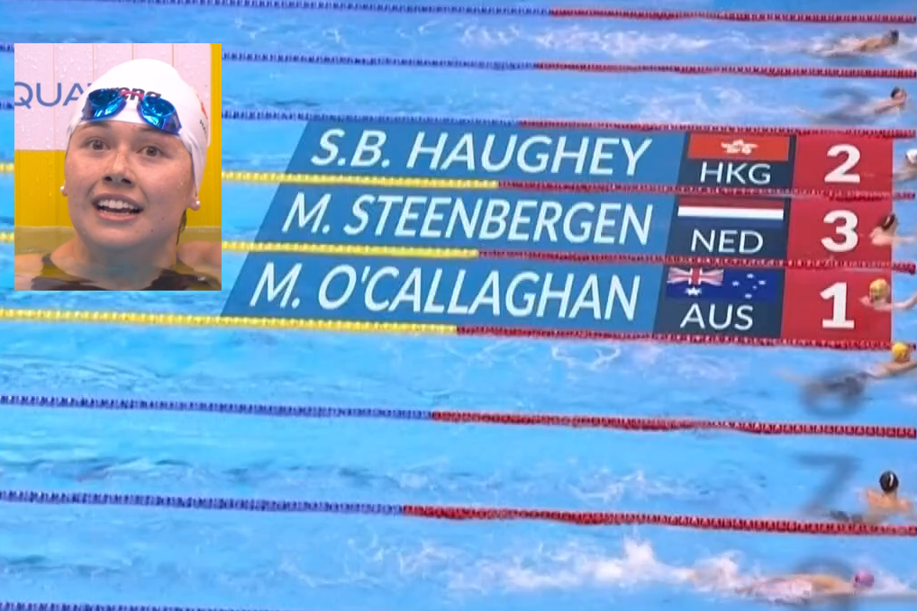 何詩蓓今日於第3線道出戰決賽全程搶放,游出更快的52秒49,但剛打破200米自由泳世界紀錄的澳洲選手Mollie O'Callaghan,於比賽末段後來居上,游出52秒16得冠軍。