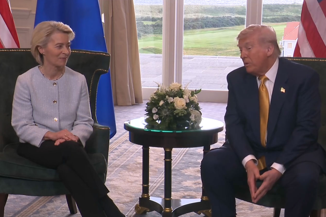 雙方在會後共同宣布,達成美歐貿易協議。美國將向大部份歐盟貨品,徵收15%關稅,低於特朗普5月時威脅加徵的50%。