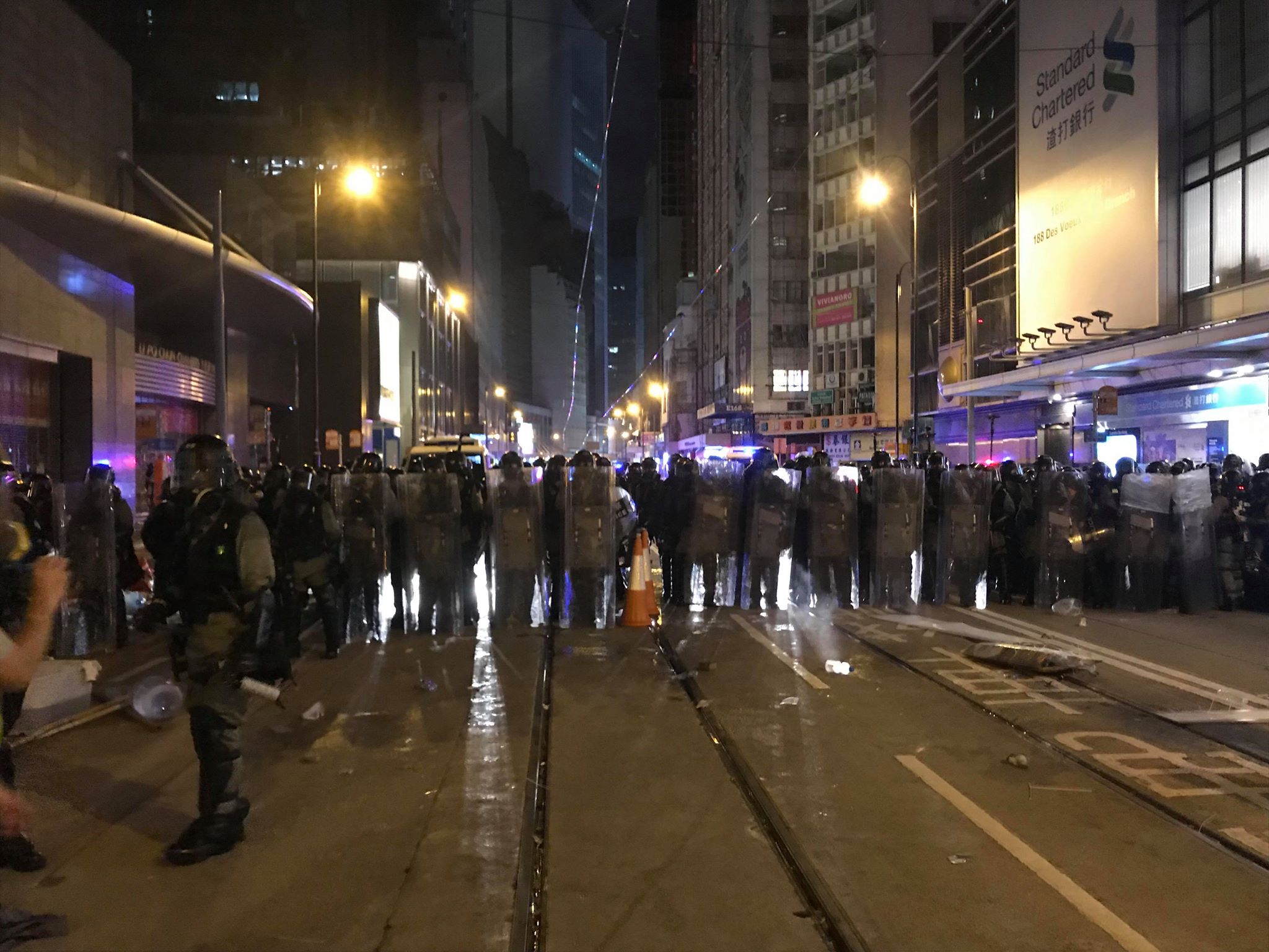 港府深夜發稿,回應港島區示威,指有市民自下午開始,在港島不同地區進行未經批准的集結,其中在上環及西環一帶有激進示威者作出暴力行為,包括向警務人員擲磚、縱火,甚至以載有燃燒中紙皮的手推車推向警方防線,對警務人員以至其他市民構成危險。