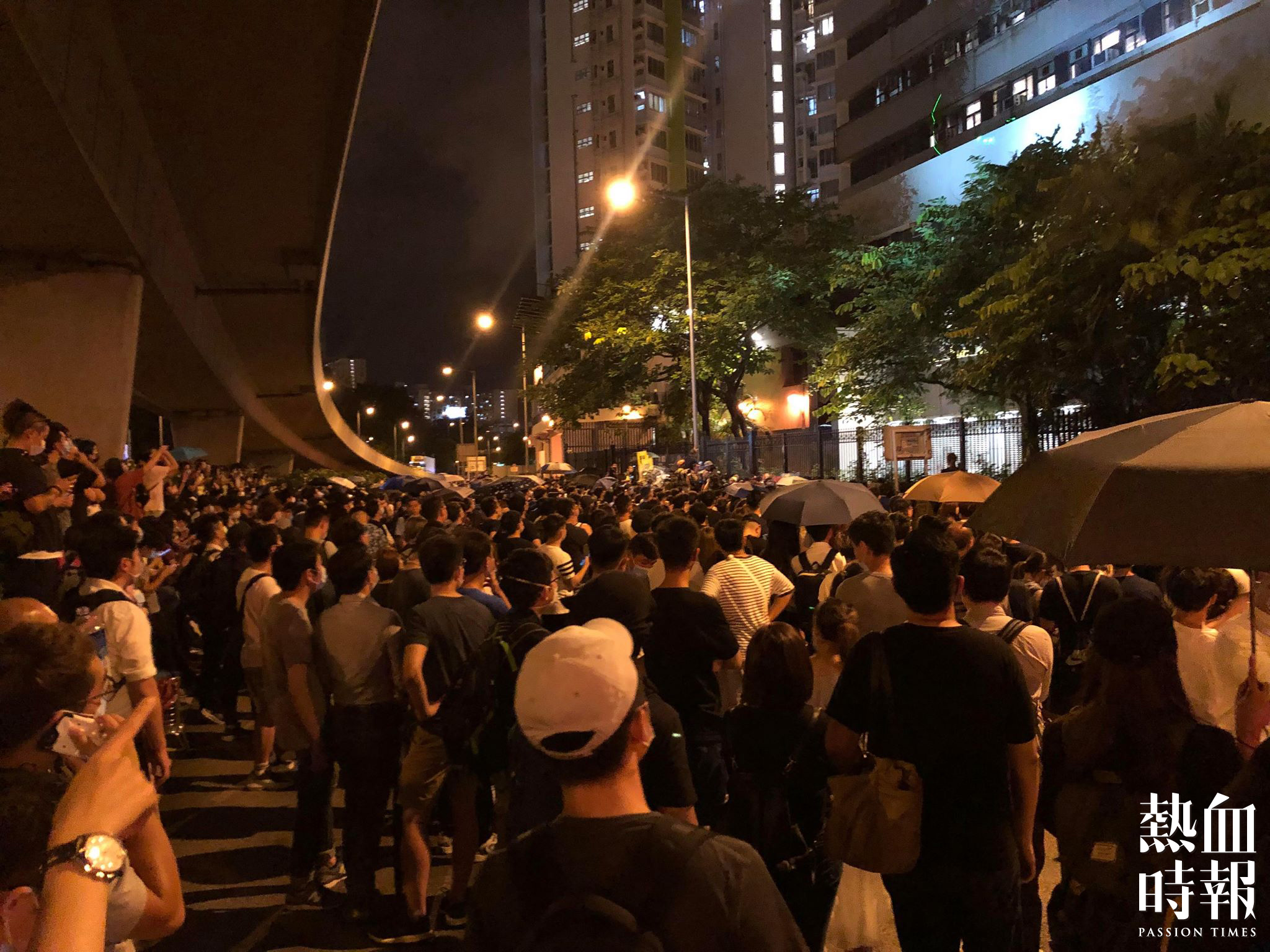 今晚在葵涌警署外,有上百名市民到場,聲援被捕人士,要求警方放人,並佔據了警署外葵涌道往荃灣方向的所有行車線。