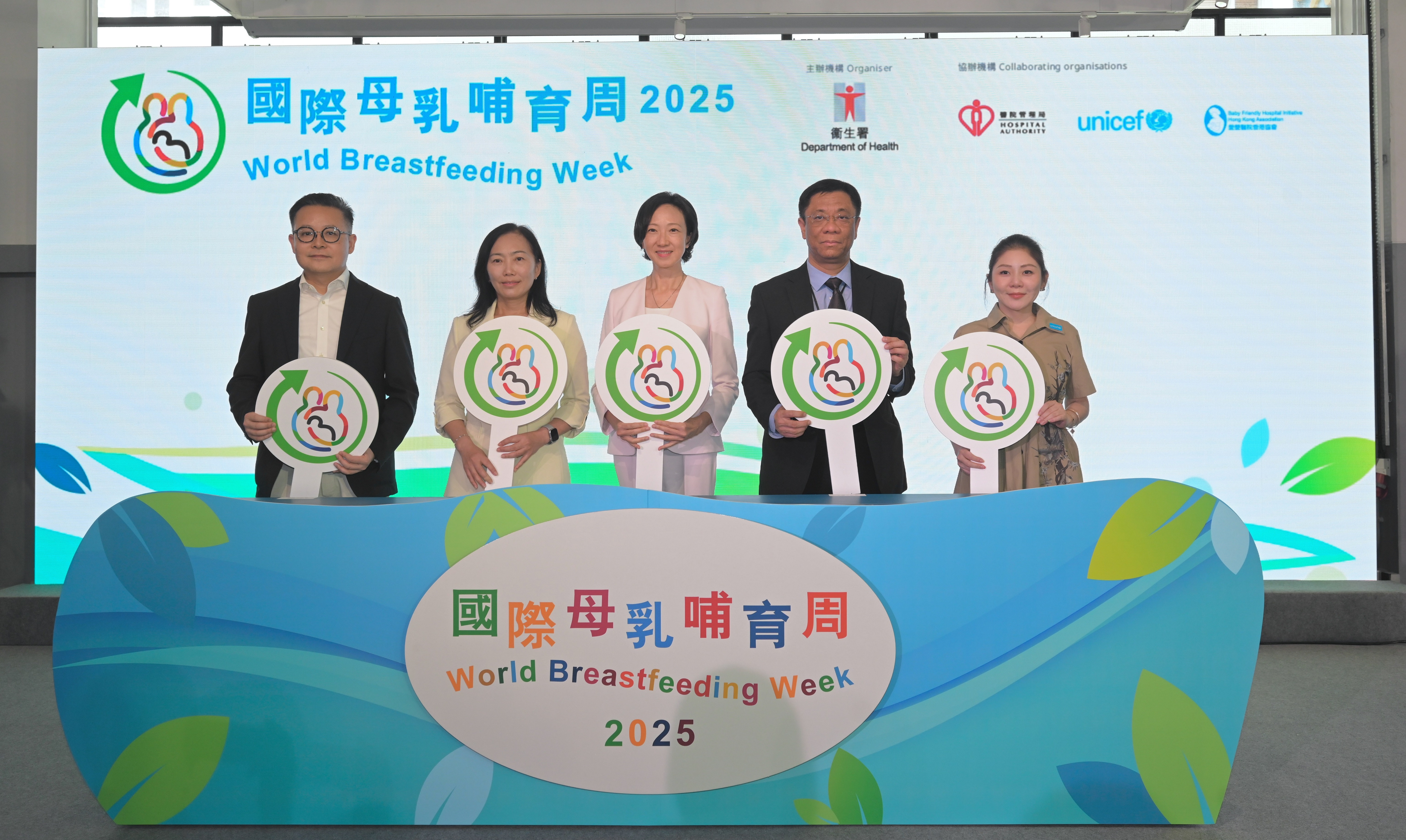 為響應國際母乳哺育周,衞生署今日(7月31日)與醫院管理局、聯合國兒童基金香港委員會及愛嬰醫院香港協會合辦「國際母乳哺育周2025」慶祝活動,全力推廣和支援母乳餵哺。