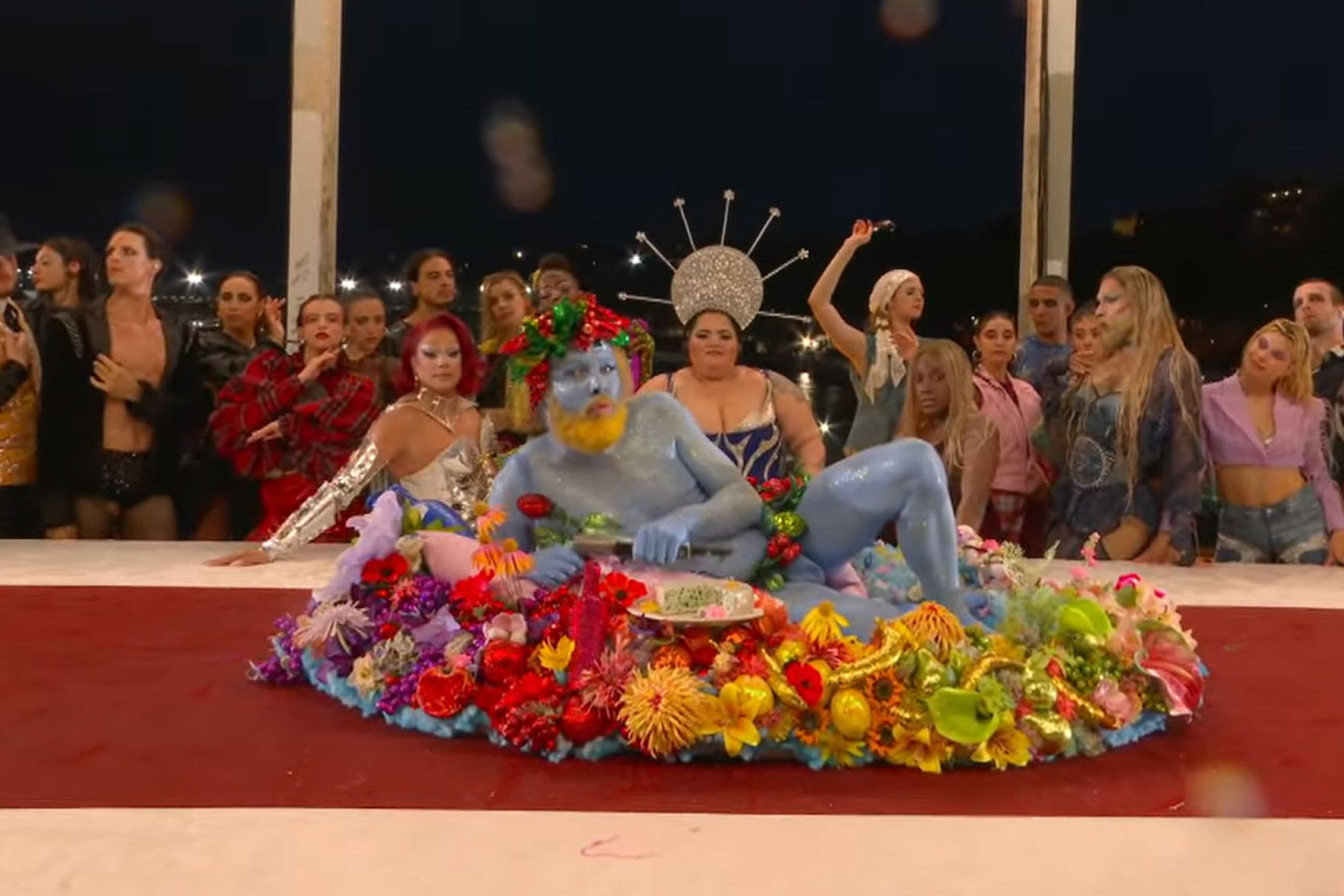 7月26日的巴黎奧運開幕禮中,疑仿《最後的晚餐》的表演者,包括幾名變裝皇后、一名跨性別模特兒,及一名扮成希臘神話中酒神迪安尼修斯的裸體歌手。