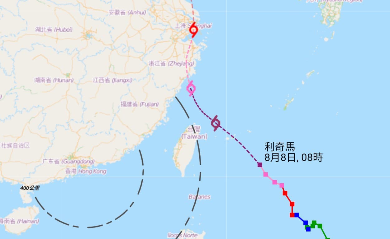 強颱風利奇馬已增強為超強颱風,台灣中央氣象局已於今早(8月8日)發出陸上颱風警報。