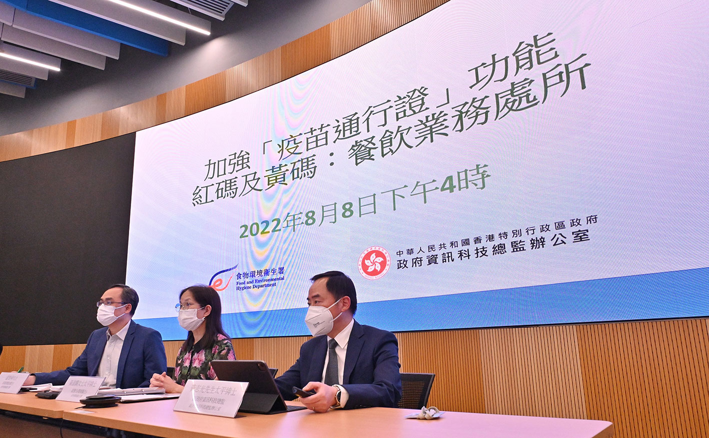 食環署今日(8月8日)下午聯同政府資訊科技總監辦公室為餐飲業界舉辦網上研討會,向餐飲處所講解屬主動查核「疫苗通行證」的處所執行「紅碼」及「黃碼」的安排。