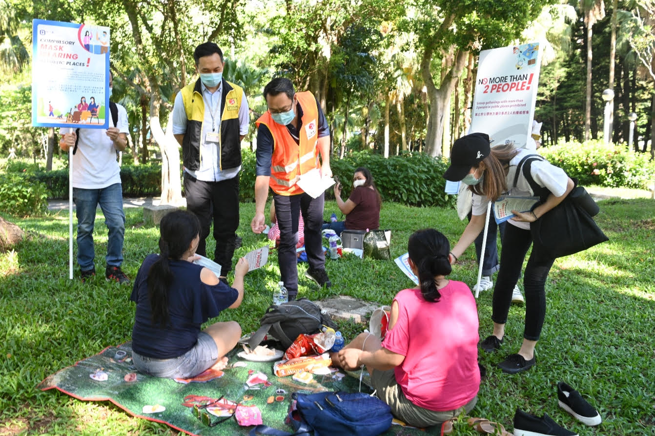 康文署就指,於周六和周日一連兩天在該署轄下場地加派人員巡邏,呼籲在場人士遵守有關禁止於公眾地方羣組聚集及佩戴口罩的規例。兩日內康文署共巡查約3000次,並作出逾5000次口頭勸喻。