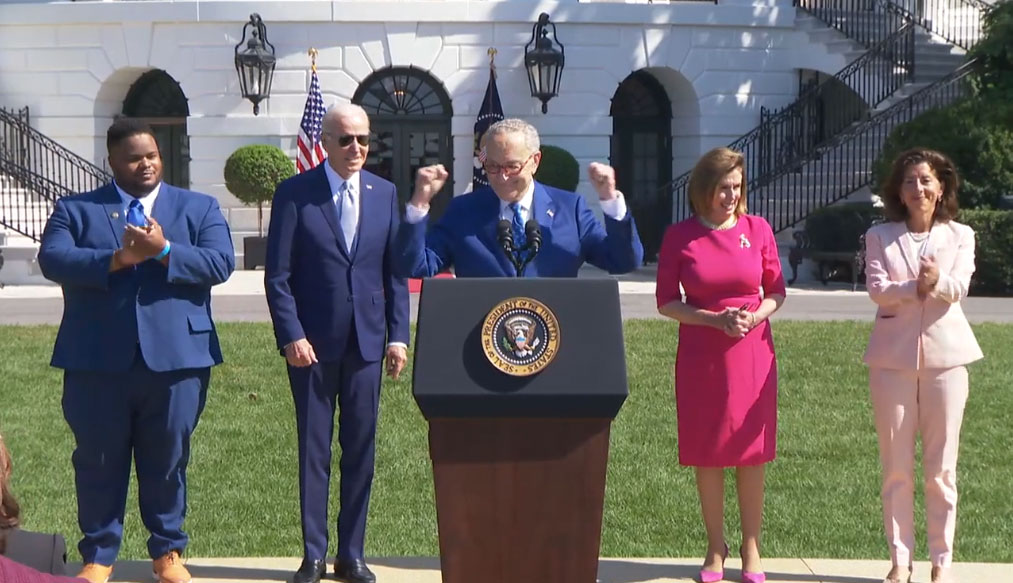拜登在白宮的簽署儀式上表示,《晶片法案》是一世代才有一次的投資美國機會。他又認為,這項法案將協助美國「贏得21世紀的經濟競爭」。