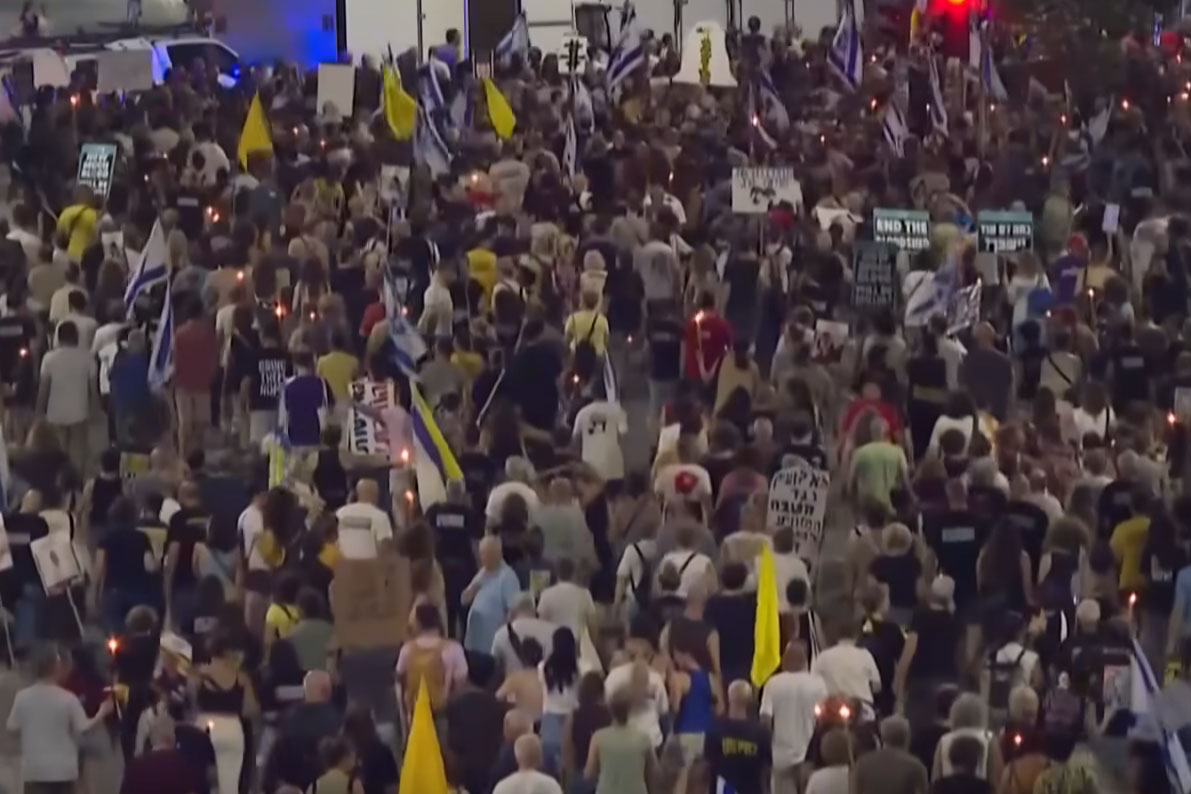 與此同時,數以萬計的以色列民眾走上特拉維夫街頭,要求結束加沙戰爭,並反對以軍接管加沙市。代表人質家屬的團體則表示,參與人數多達10萬人。
