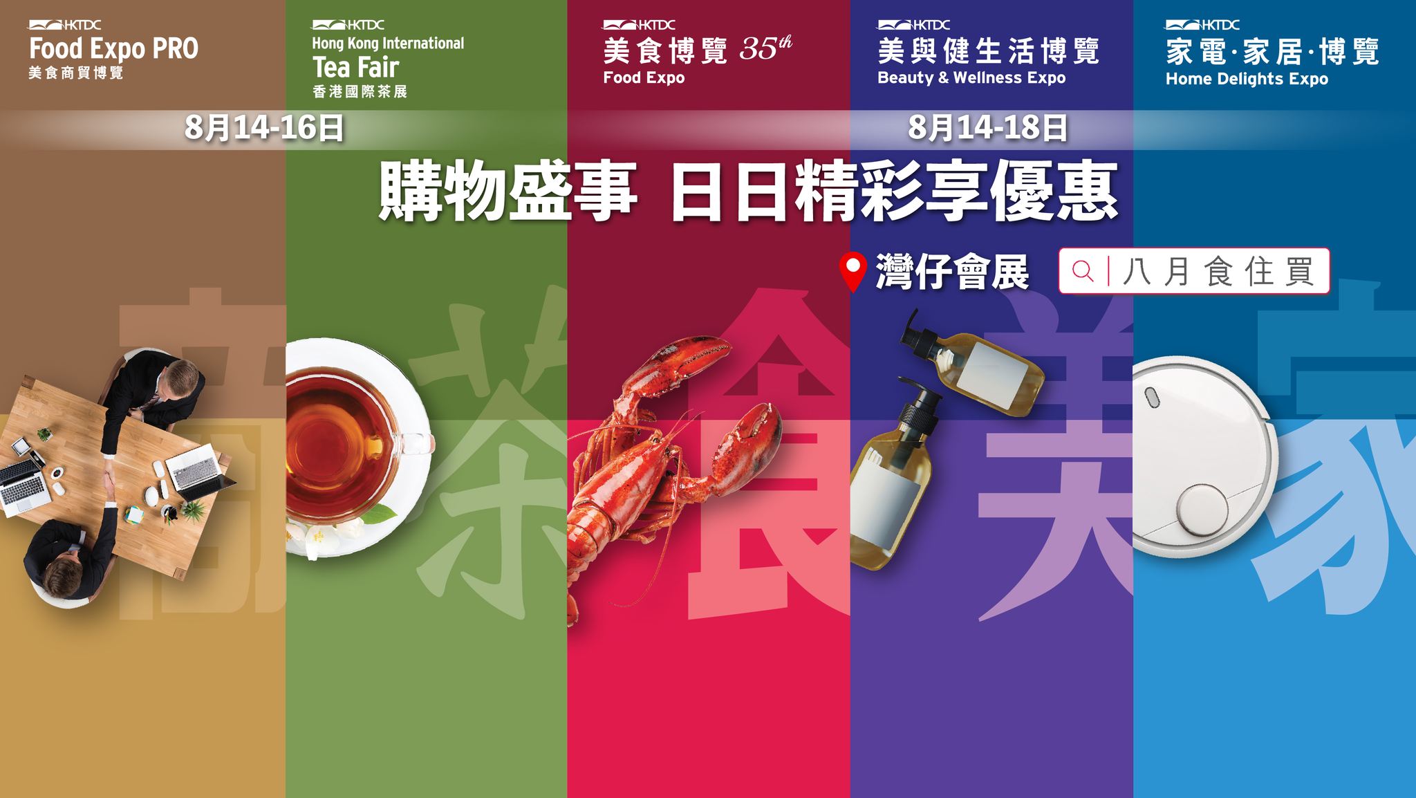 由香港貿易發展局主辦的美食博覽、香港國際美酒展、香港國際茶展、家電‧家品‧博覽,以及美與健生活博覽,將於今日(8月12日...