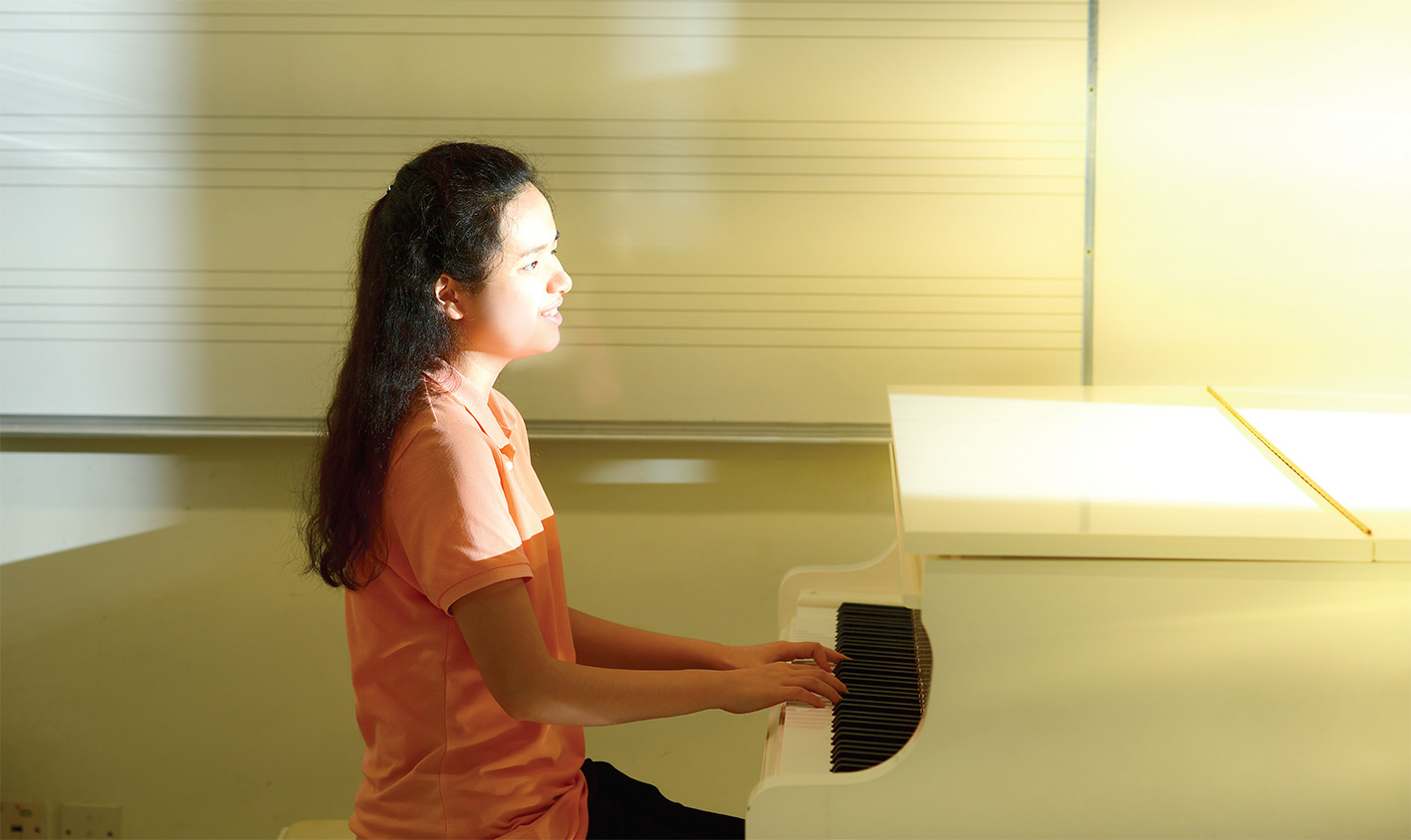雖然失明人士要學琴一點都不容易,但未有動搖她對音樂的熱愛。歌曲只要聽過一次,即可完整彈奏出來,分毫不差。「後來人告訴我,這種能力喚『絕對音準』(perfect pitch)。一般視障人士聽覺靈敏,而我的inner ear比大家再敏感一點點罷了。」她謙虛地道。