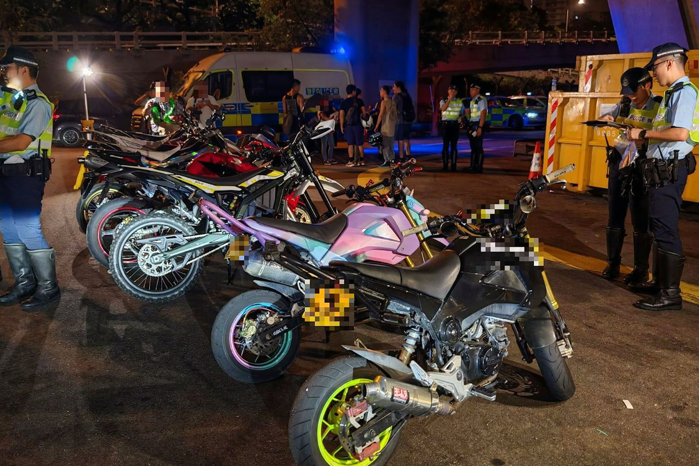 警方新界南總區交通部執行及管制組今日(8月18日)凌晨在青衣貨櫃碼頭南路發現7男1女形跡可疑,遂上前調查,經調查後,警員發現7輛電單車及1輛私家車懷疑曾非法改裝或不符合法例規定,涉嫌違反《道路交通(車輛構造及保養)規例》,遂向車主發出欠妥車輛報告,以及將涉事車輛扣留至汽車扣留中心作進一步檢驗。