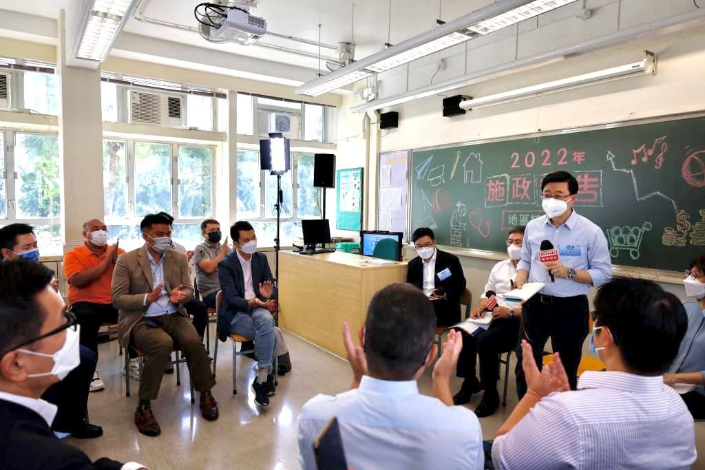 行政長官李家超率領一眾司局級官員,今日(8月20日)出席《施政報告》地區諮詢會,聽取地區人士意見和建議。活動在荃灣官立中學舉行,約100位市民出席。
