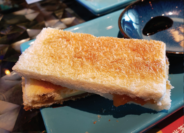 至於招牌雞飯,亦值得一試,質素算是上等之選。雞肉嫩滑但味淡,需靠醬汁搭救;米飯顆粒分明,卻略欠油香。因此,若與早前本欄介紹過的那一家比較,明顯被比下去。反而其辣汁鳳爪來得更為出色⸺醬汁惹味,外皮爽脆,是不容錯過的小吃。最後,來一客咖椰多士作甜點,麵包鬆脆,牛油厚實,咖椰醬香甜,為近日苦澀的生活,尋回一點小確幸。
