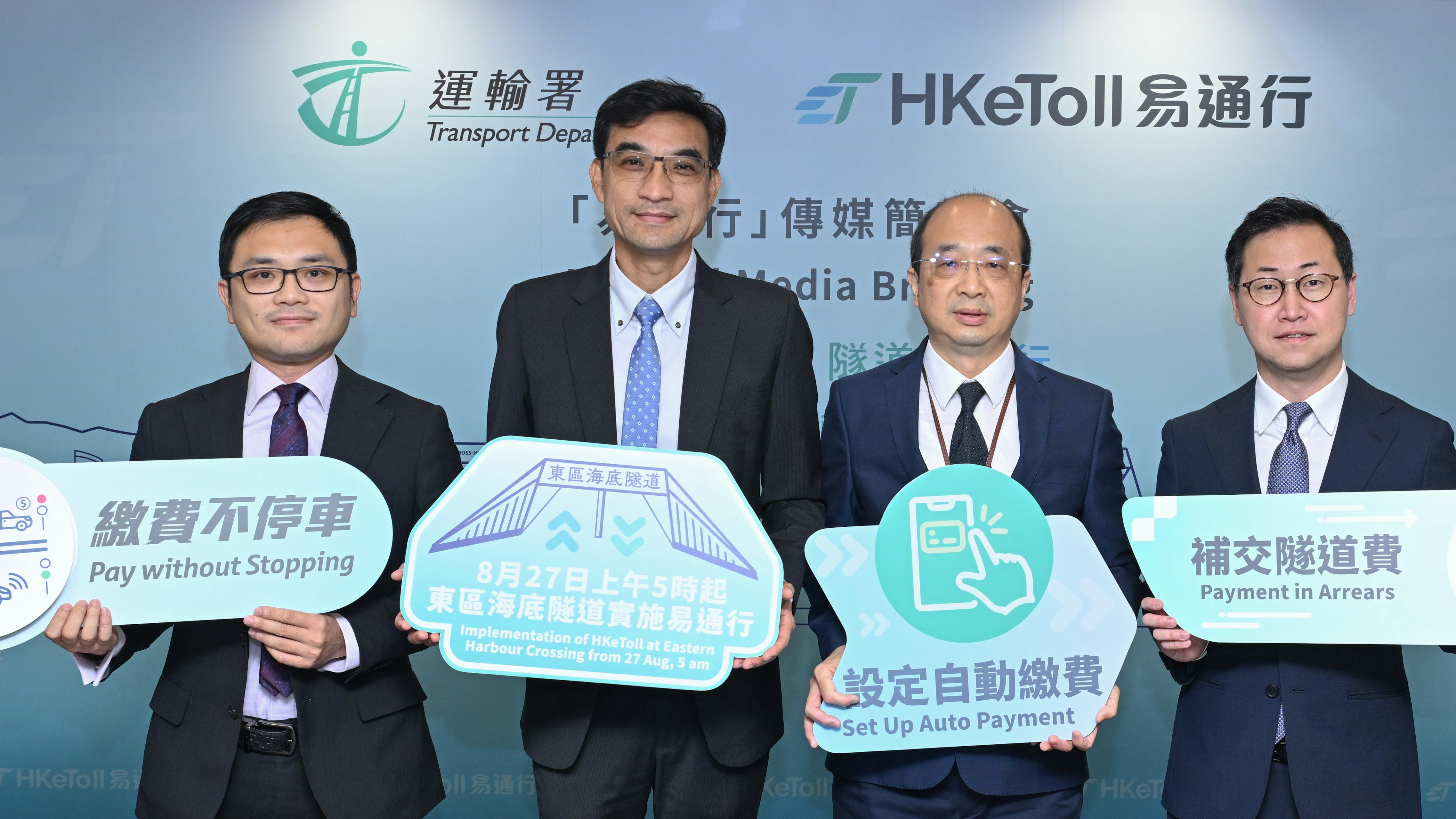 運輸署今日(8月24日)提醒市民,東區海底隧道將於本周日(8月27日)上午5時起實施「易通行」,屆時駕駛者可直接駛過收費廣場,透過「易通行」繳交隧道費,無須停車或排隊付款。所有人手收費亭及快易通車道將會取消。