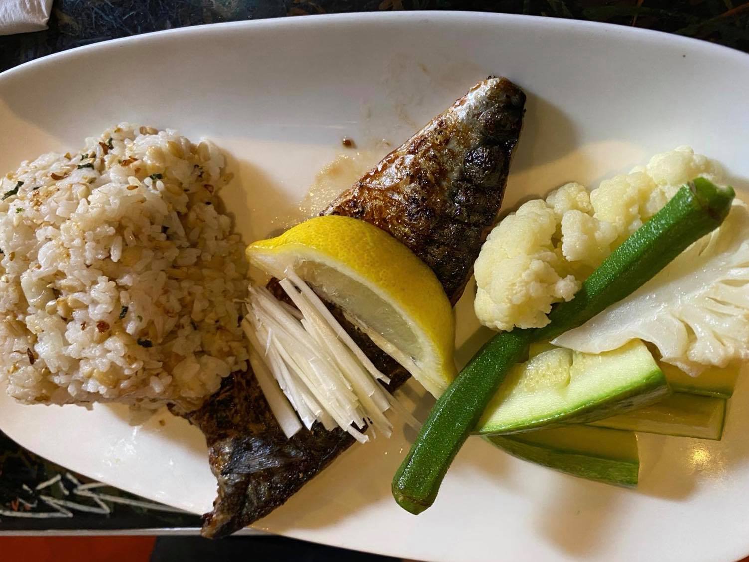 吃罷前菜沙律後,未幾兩味主菜便端到枱上,鯖魚燒得平均,反而令我留意到的是放進飯素的伴飯,當兩樣同時放入口時,味道非常豐富。
