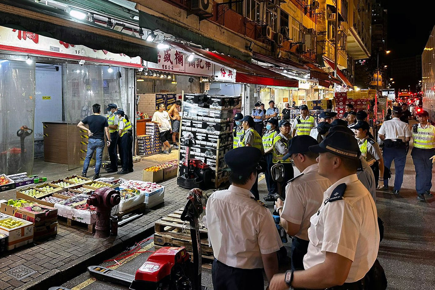 警方昨晚(8月28日)聯同食環署人員,於油麻地窩打老道、新填地街、上海街及渡船街一帶進行聯合行動,打擊阻街及交通違例事項。