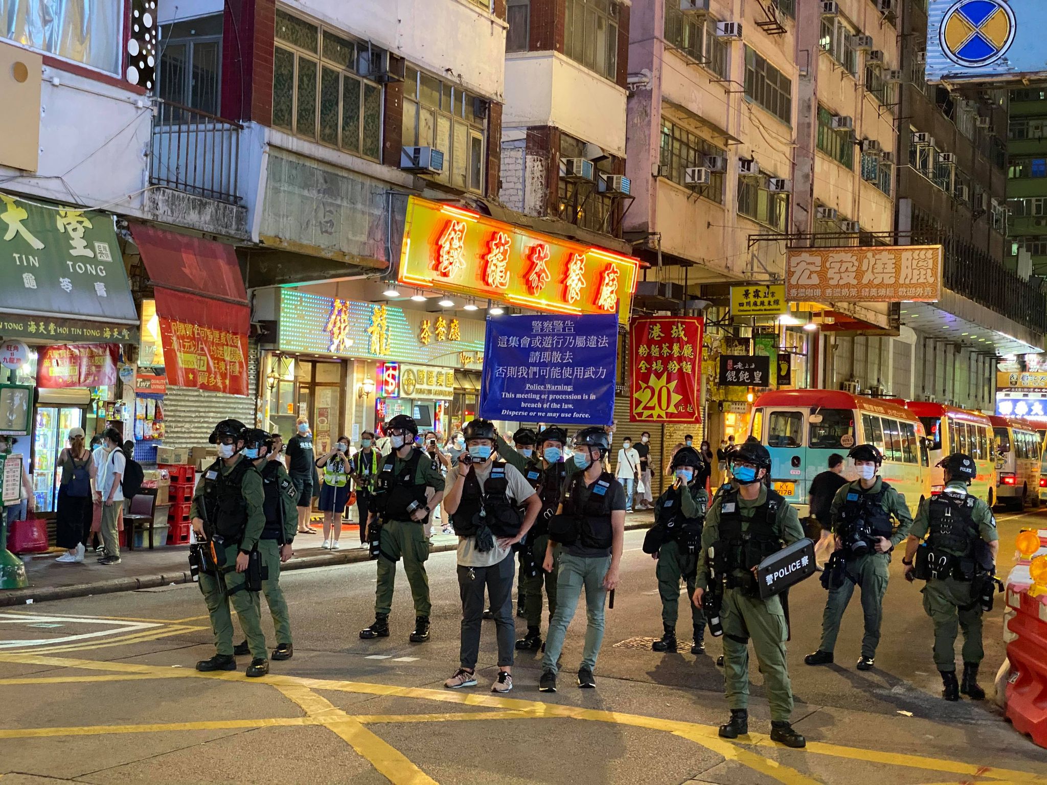 警方呼籲集結羣眾停止集結及立即離開,市民亦不應參與任何未經批准集結及受禁的羣組聚集。警方嚴厲譴責任何不負責任、罔顧公共衞生的行為,警方會繼續嚴正及果斷執法,絕不容忍任何違法行為。