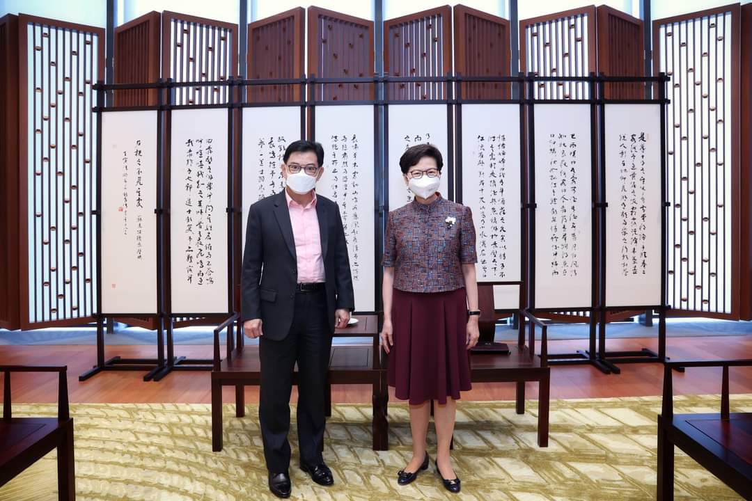 正身處香港訪問的新加坡副總理王瑞杰,昨日與前行政長官林鄭月娥會面,是林鄭卸任後首次接待外賓。