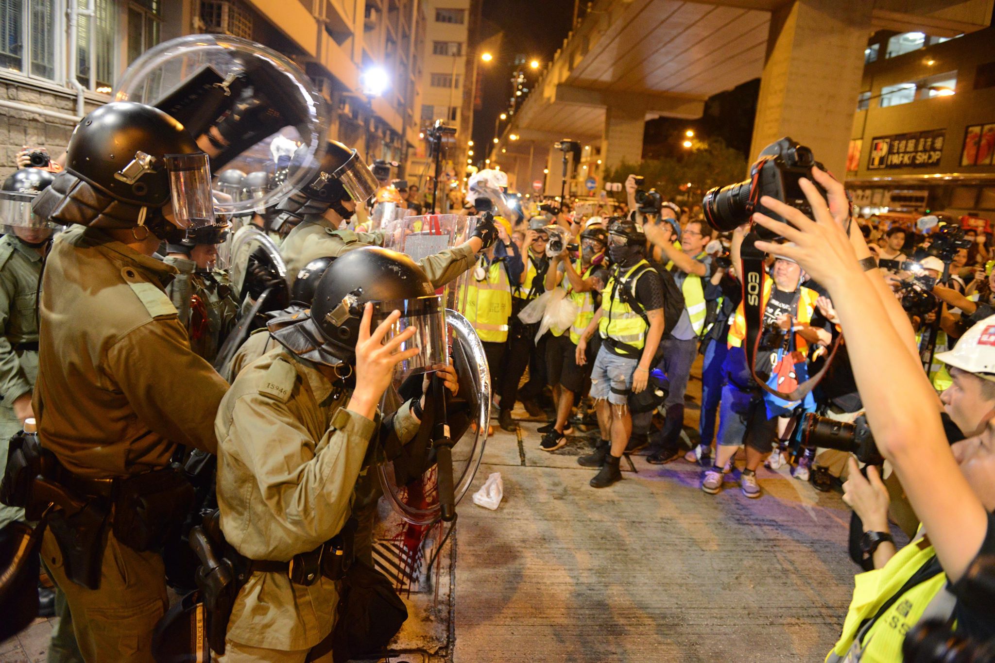 昨晚警方於太子驅散示威者期間,於旺角警署門外,曾無理地近距離向記者施放胡椒噴霧,並且施放催淚彈,究竟警察還好意思叫傳媒做「記者朋友」?