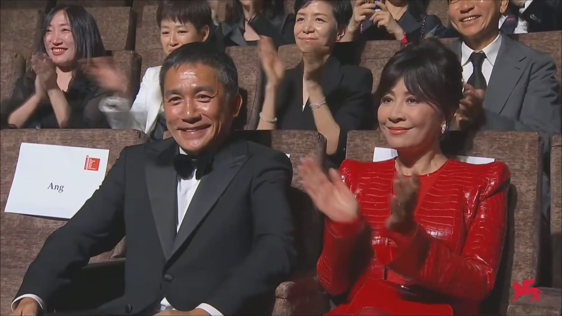 梁朝偉與太太劉嘉玲周六(9月2日)出席頒獎禮,從導演李安手上正式接過獎項。