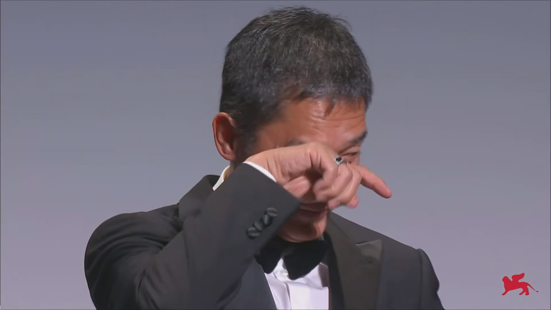 梁朝偉在台上一度感動落淚,他感恩能在香港長大,提及演藝事業從香港開始,感謝香港電影工業的栽培。